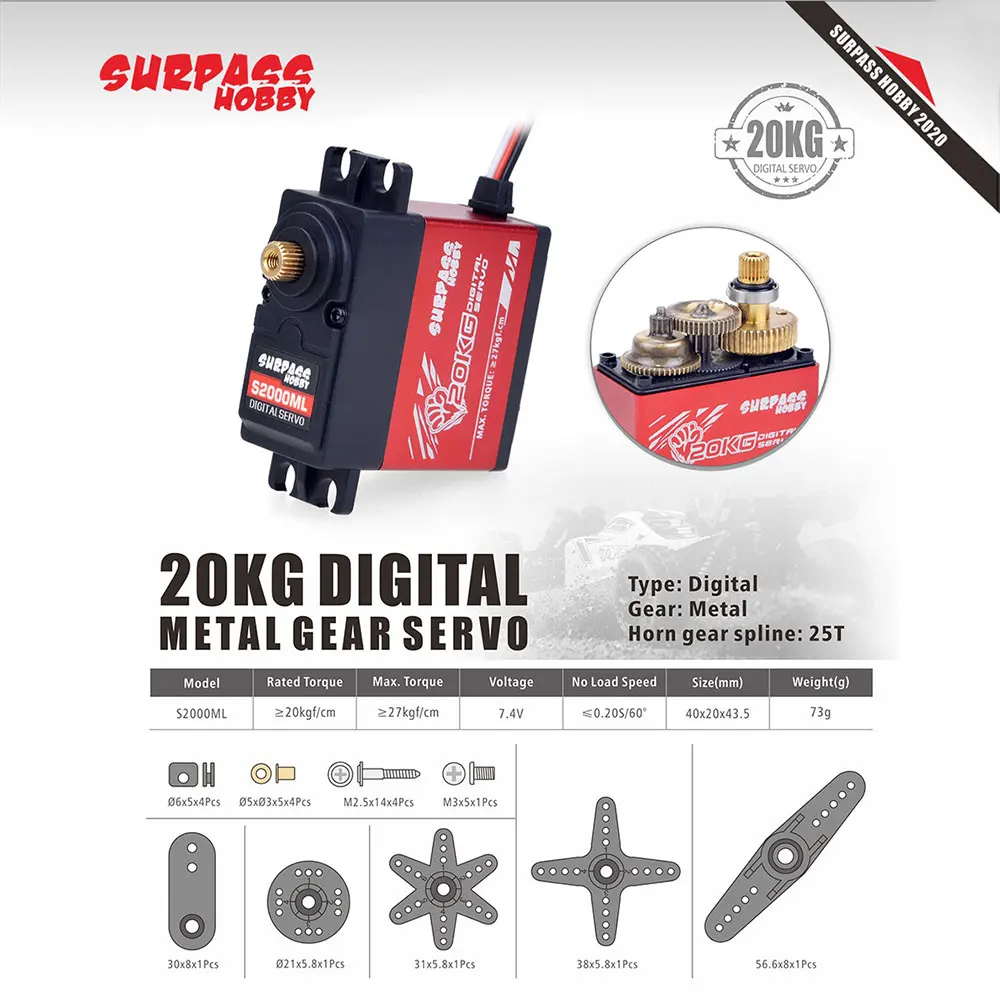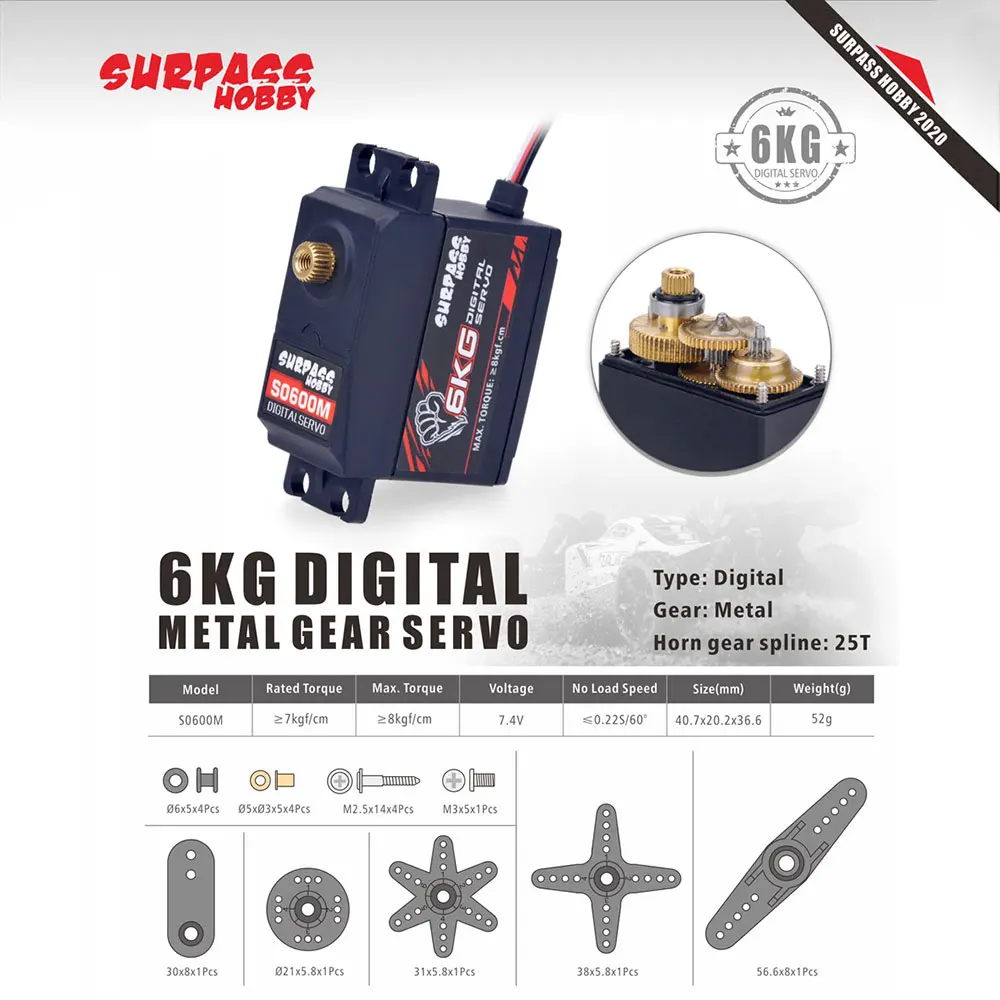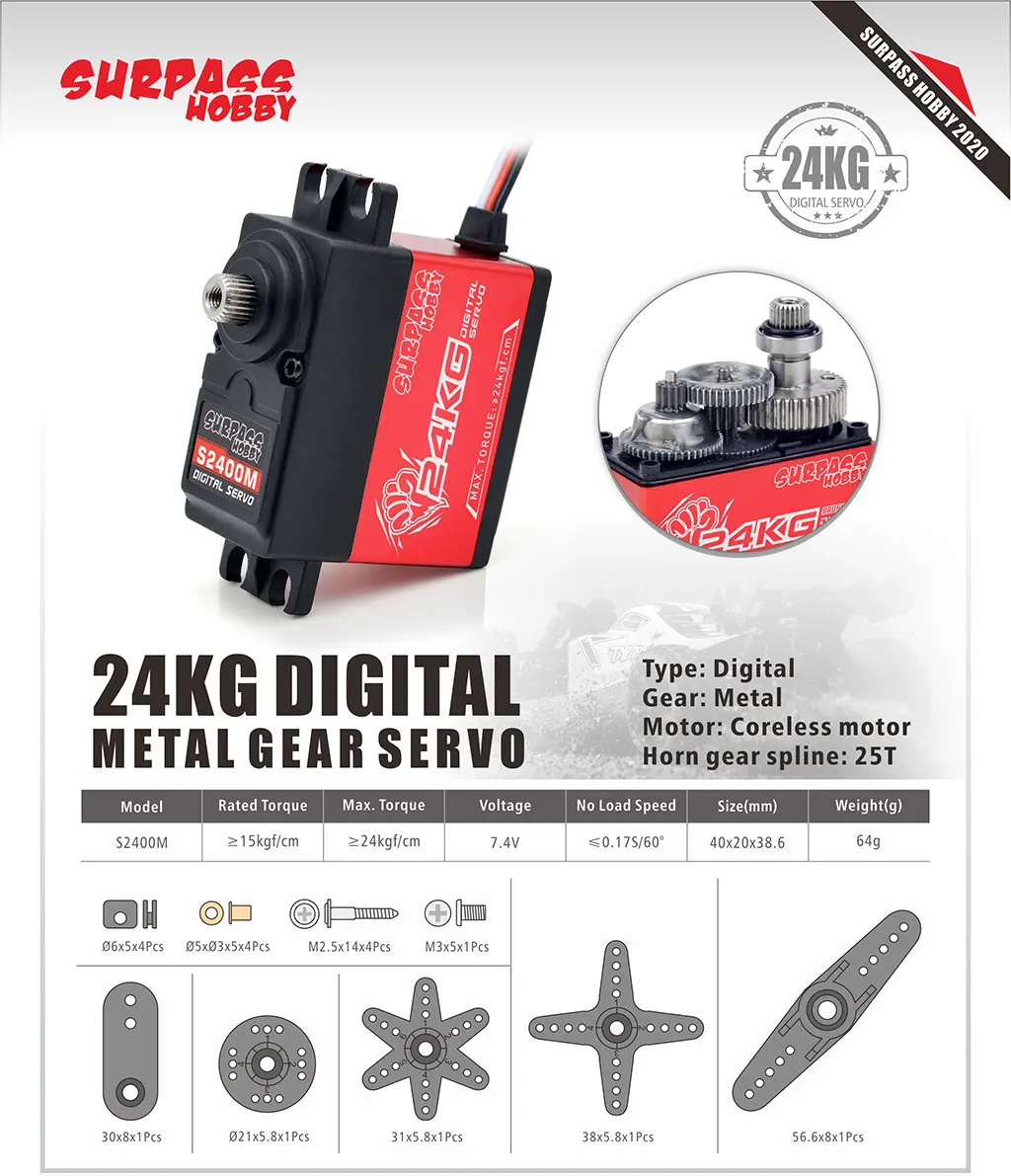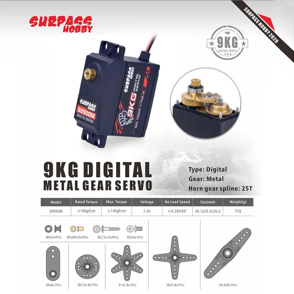 Сервопривод цифровой Surpass Hobby для радиоуправляемых автомобилей, лодок, роботов, самолетов, 9 г, 17 г, 6 кг, 9 кг, 15 кг, 20 кг, 23 кг, 24 кг