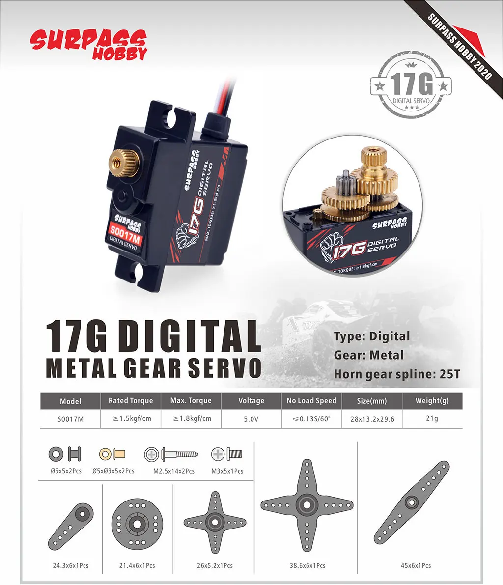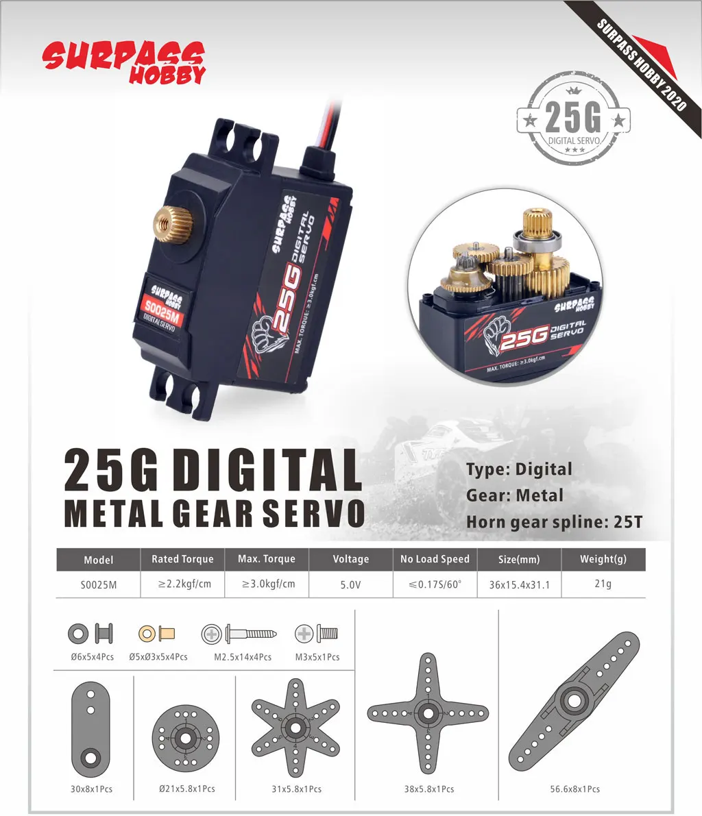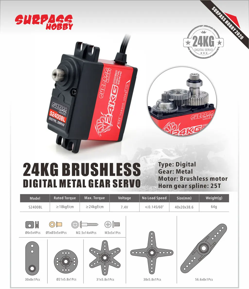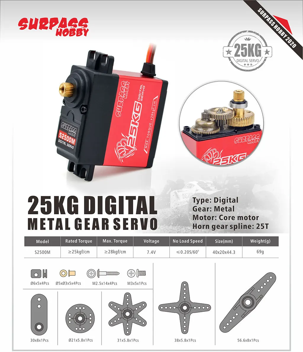 Сервопривод цифровой Surpass Hobby для радиоуправляемых автомобилей, лодок, роботов, самолетов, 9 г, 17 г, 6 кг, 9 кг, 15 кг, 20 кг, 23 кг, 24 кг