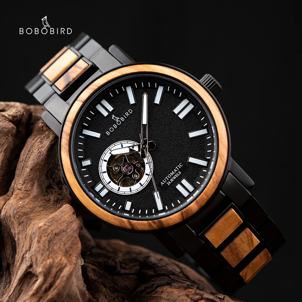 Механические часы BOBO BIRD часы-браслет из Для мужчин древесины Наручные часы Япония Move Для мужчин t Водонепроницаемый оливкового дерева ремешок из нержавеющей стали, часы для женщин и мужчин, часы мужские, в коробк