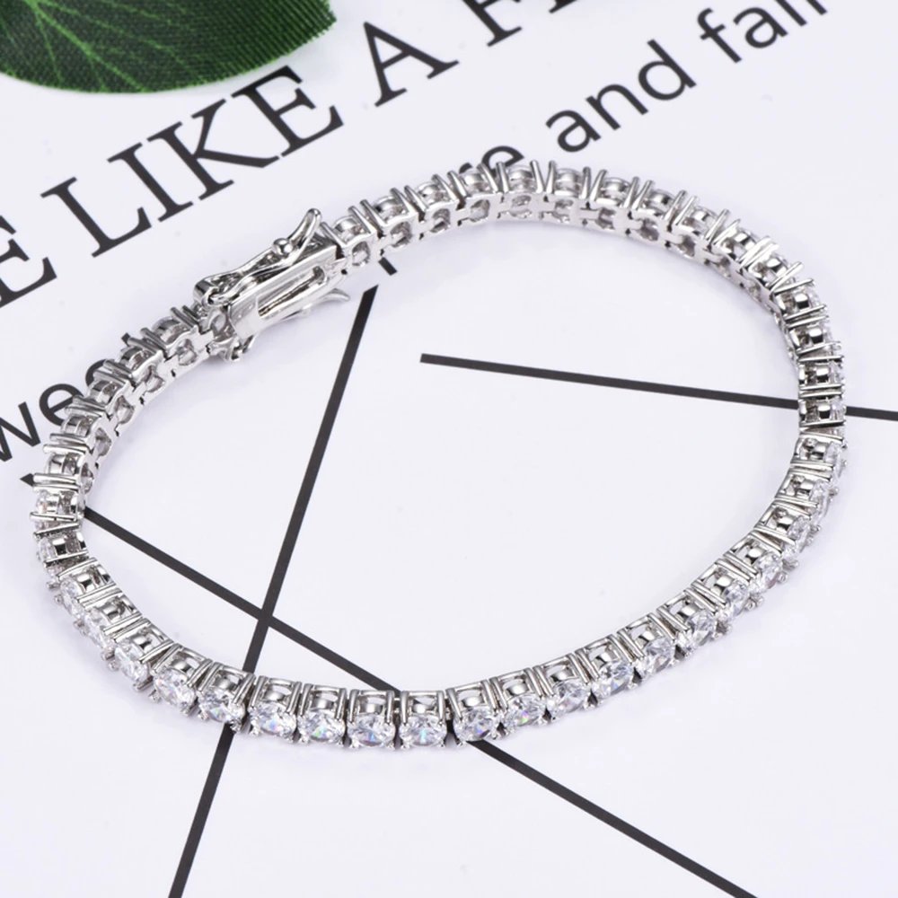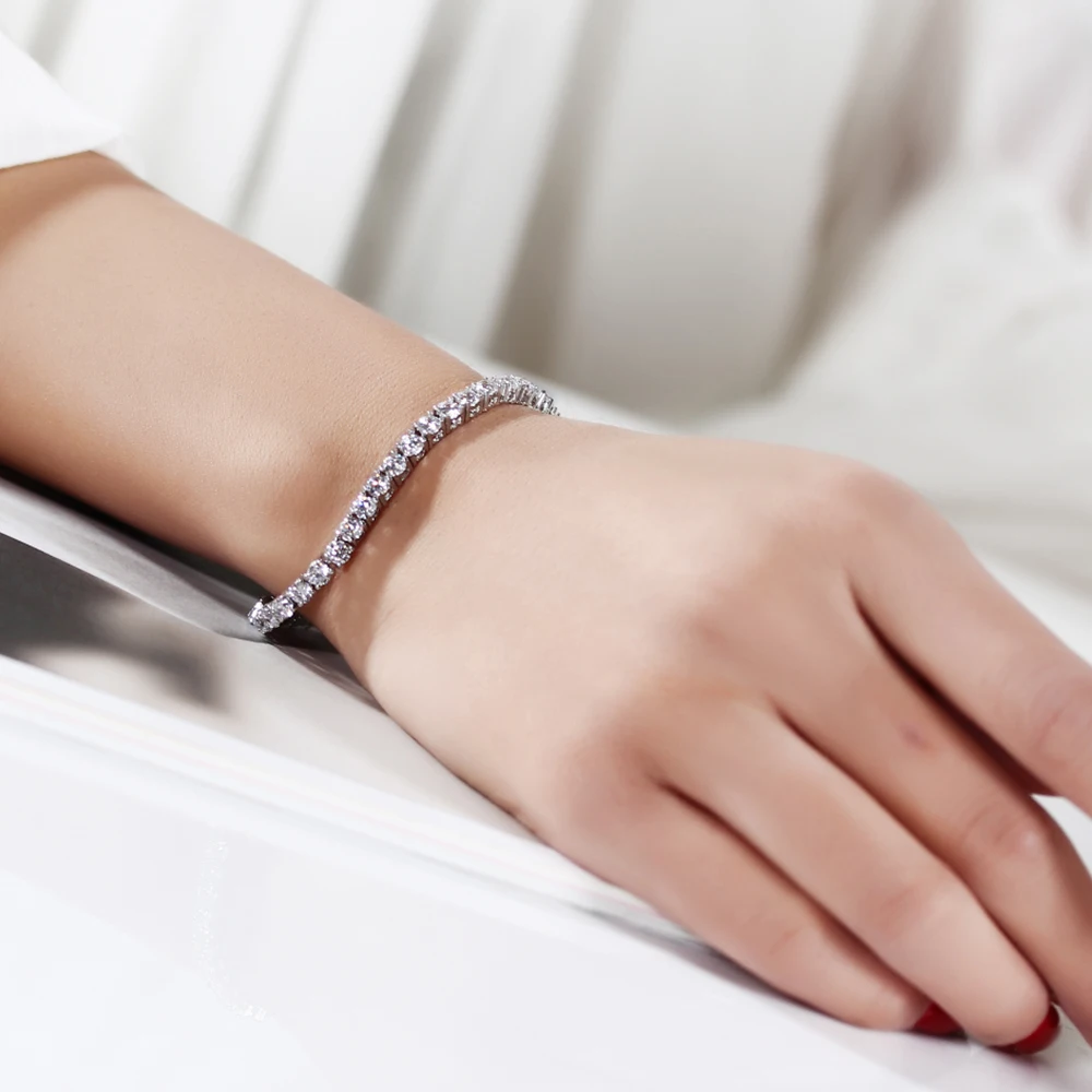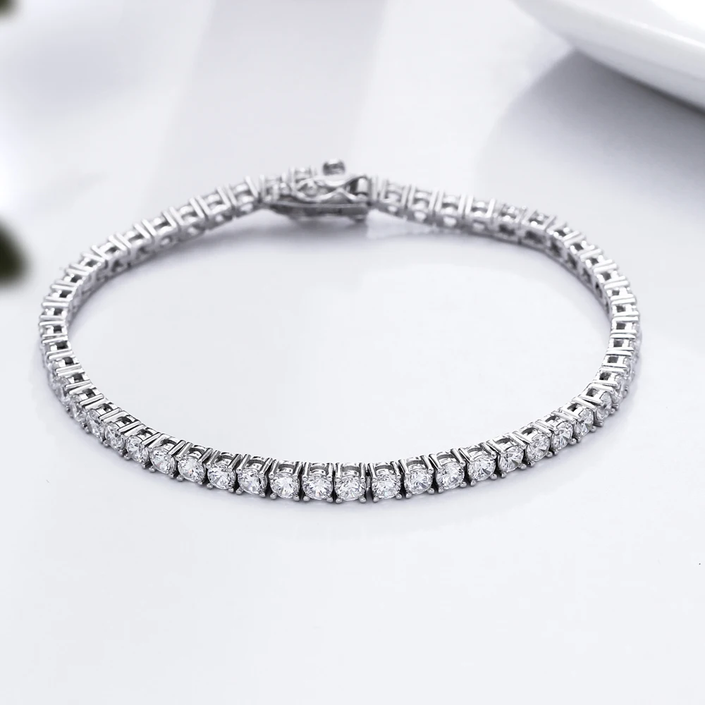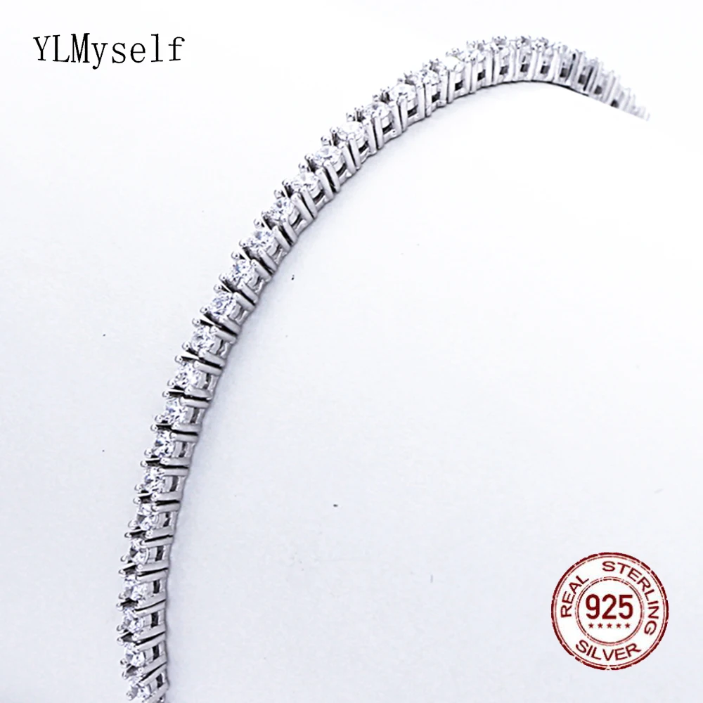 Браслет для тенниса, из чистого серебра 16-20,5 см, 2-4 мм, 5A CZ, вечный подарок для жены, потрясающие настоящие украшения 925