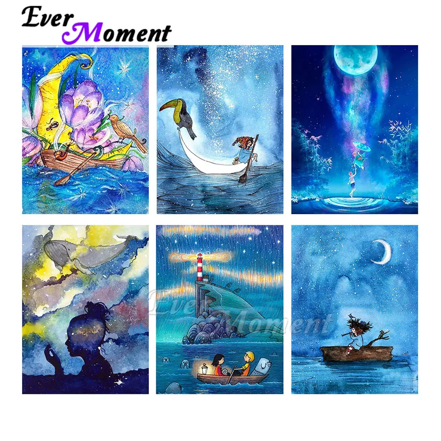 Ever Moment 5D DIY Алмазная картина, вышивка крестиком, лодка на ре...