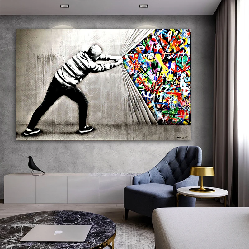 Холст, картина за занавеской, граффити, Картина на холсте, плакаты, уличный принт, настенное искусство, декор для гостиной, дома
