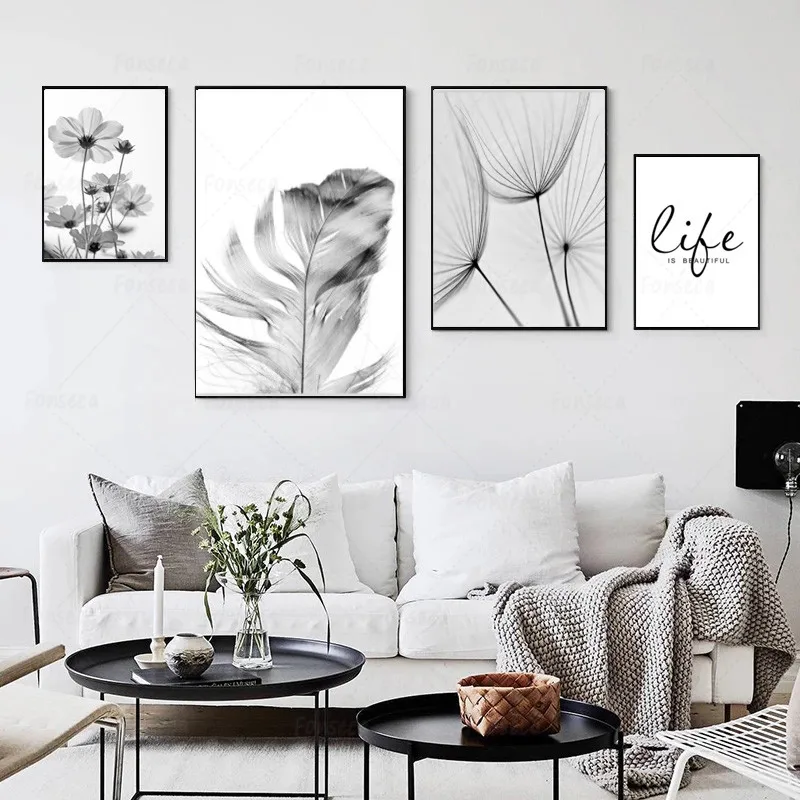 Плакаты с принтом одуванчиков в виде черно-белых цветов, перьев, Северное растение, Листьев, настенные художественные картины, картины на холсте для путешествий