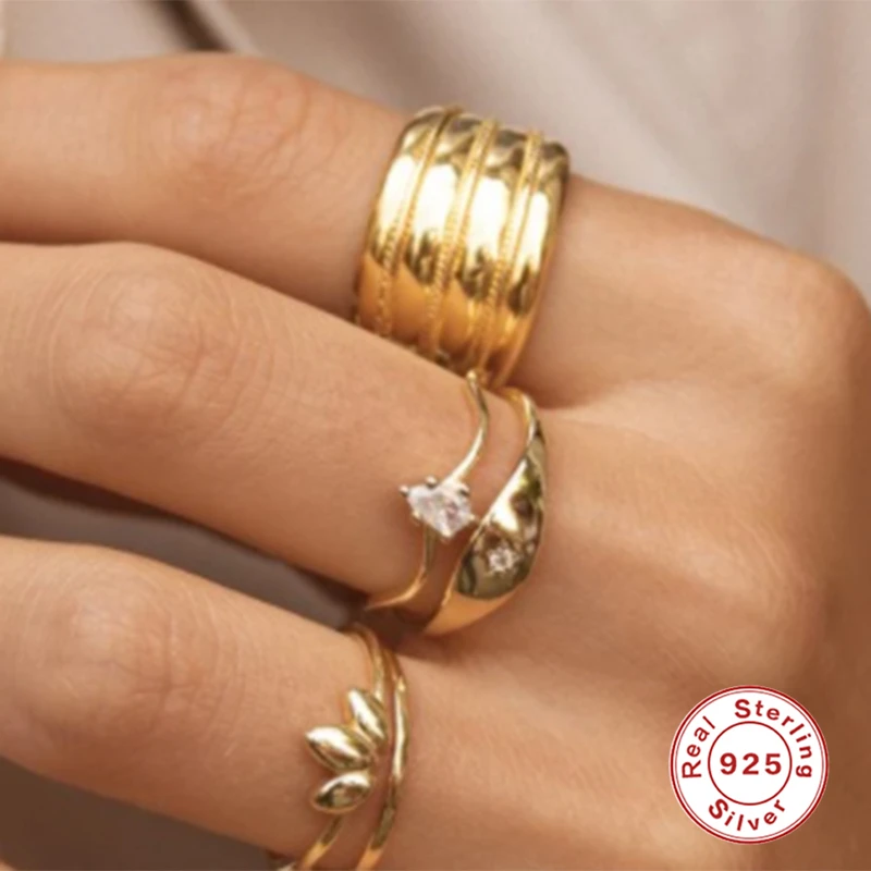 AIDE золото Цвет выдолбленный дизайн серебряные кольца для женщин м...