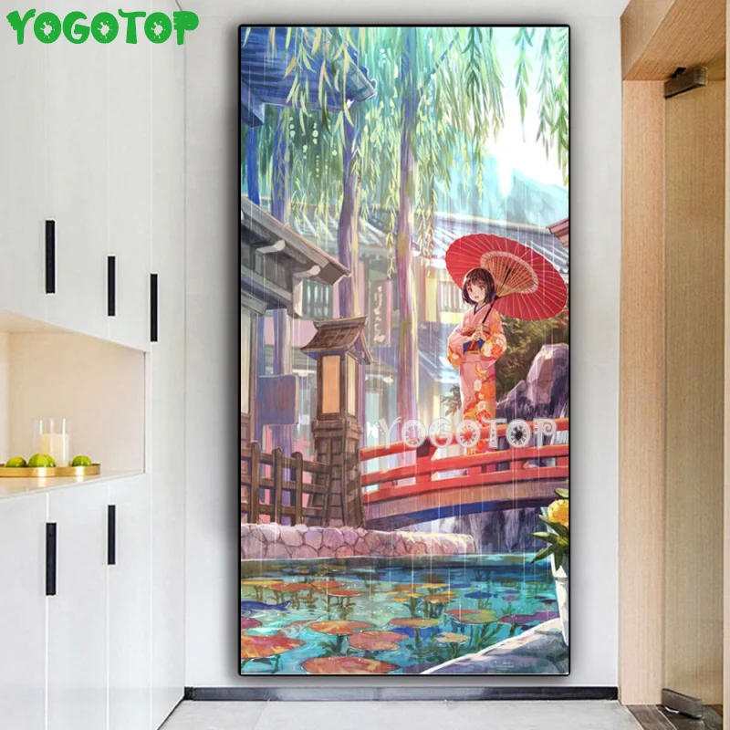 Алмазная живопись своими руками, Набор для вышивки крестиком, японская девушка, полная Алмазная вышивка, наслаждайтесь пейзажем, 5D мозаика, декор Лотос YY4859