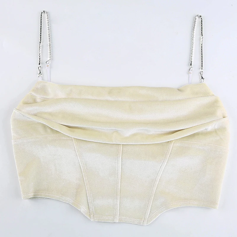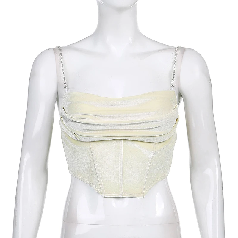 HEYounGIRL бархат сексуальный корсет, бюстье укороченный летний топ без рукавов с украшением в виде кристаллов С НАБОРНЫМИ БРЕТЕЛЬКАМИ топы футболки для девушек с низким вырезом на спине вечерние Клубные