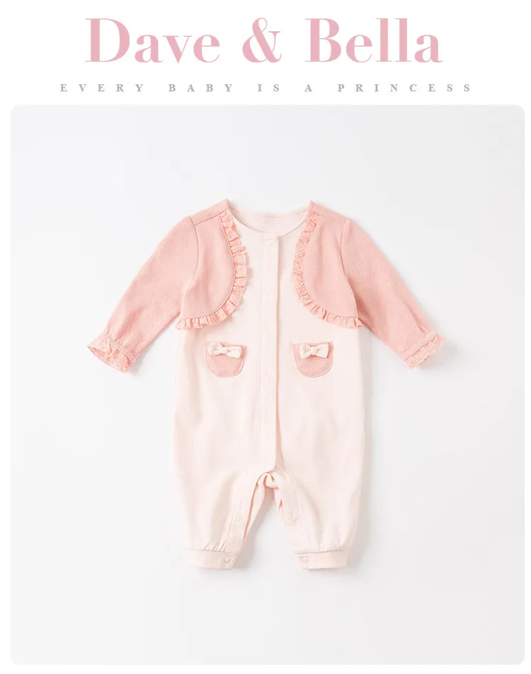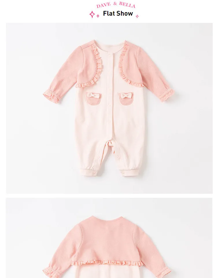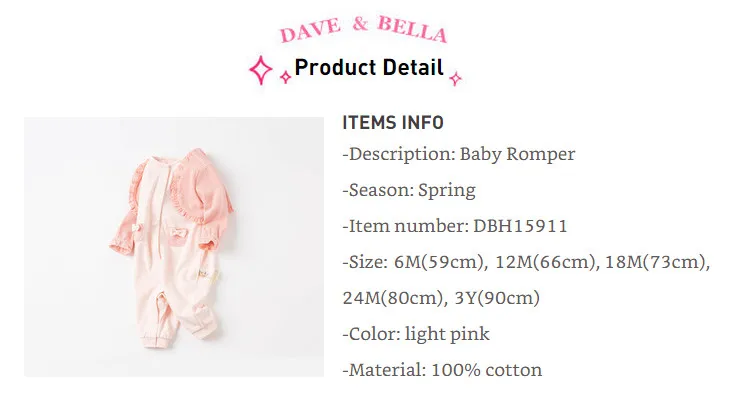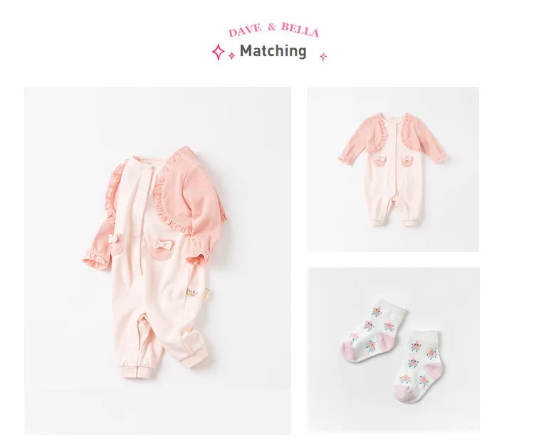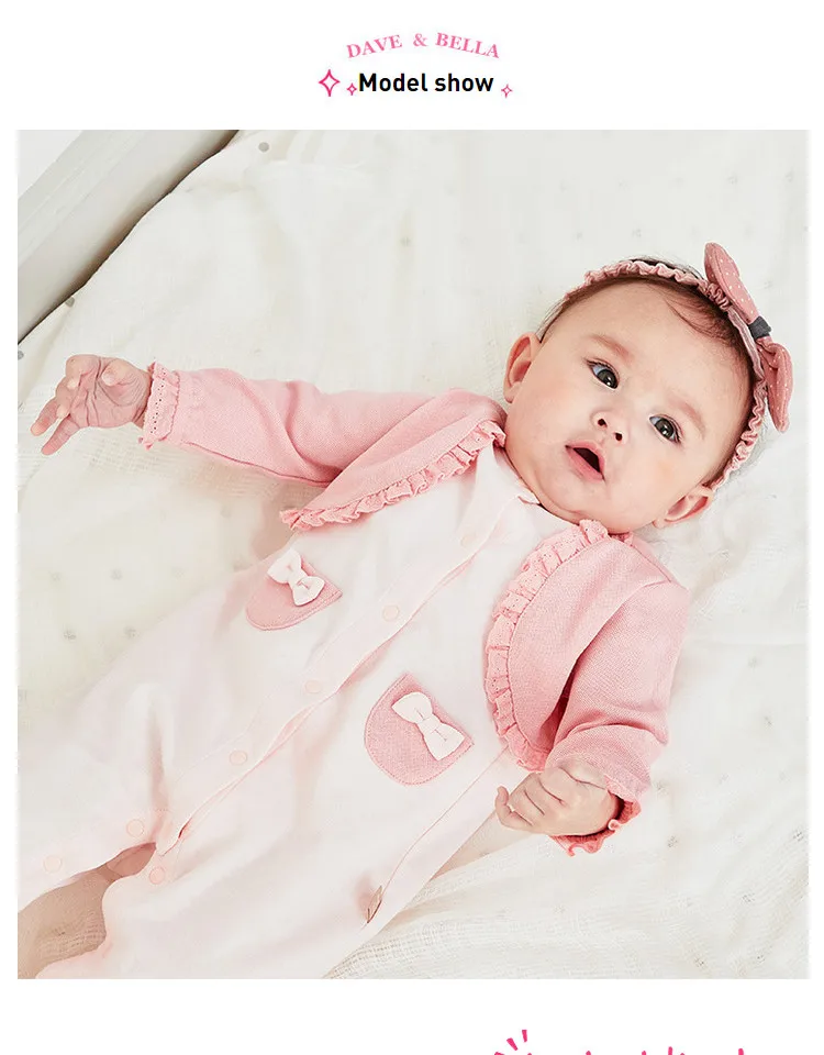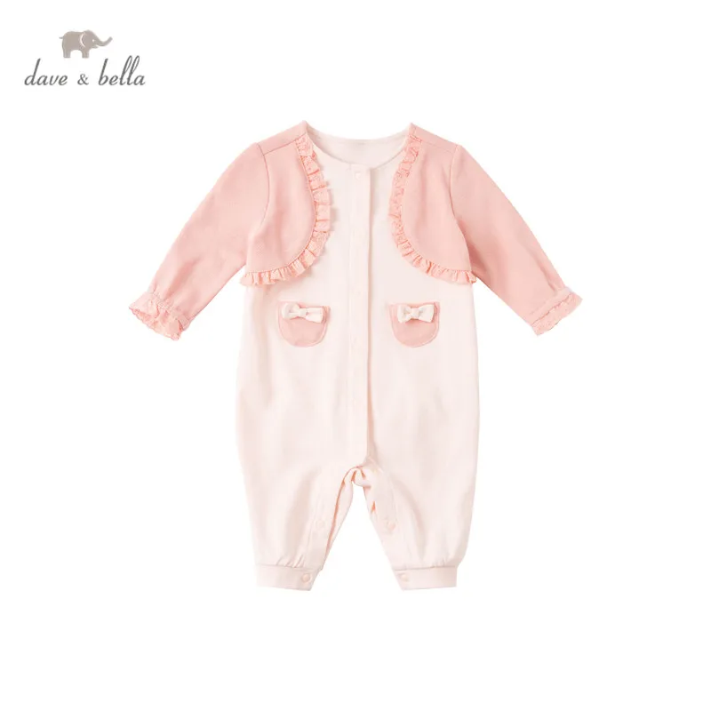 DBH15911 нижнее белье в стиле бренда dave bellaВесенняя Новинка для новорожденных; Модная одежда для девочек с бантом; С рюшами; Костюмы для младенцев; Одежда для малышей; Детский комбинезон; 1 шт.