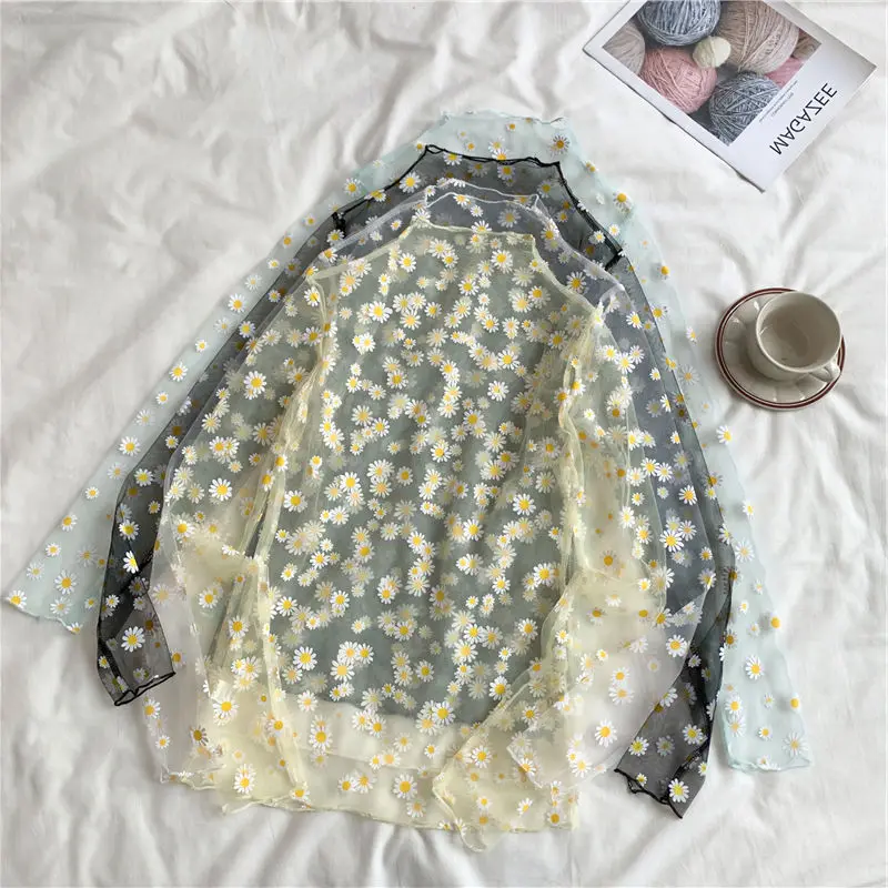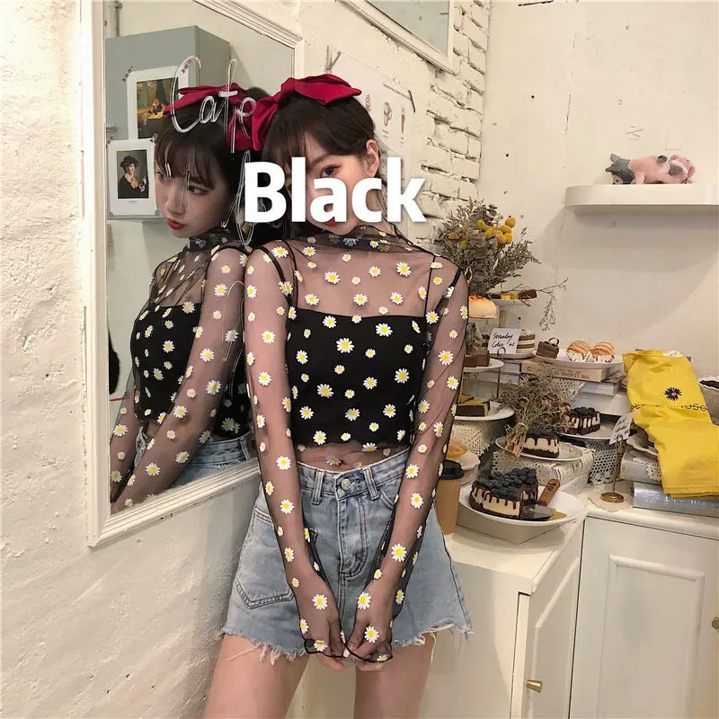 Сетчатый топ с маргаритками в Корейском стиле, новая эстетическая М...