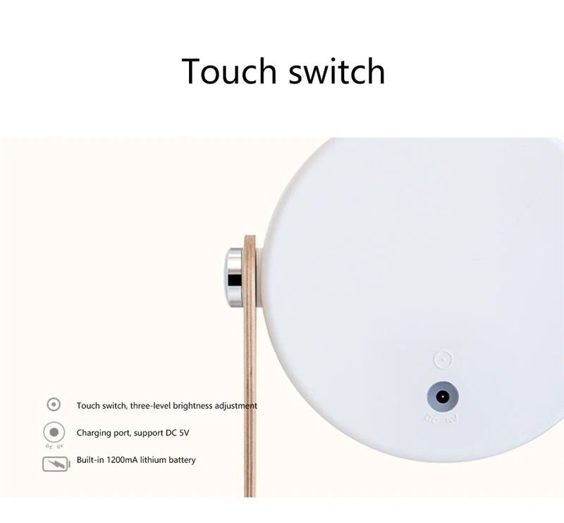 3 яркости с регулируемой яркостью благодаря чувствительному прикосновению к цвету теплый белый светильник, прикосновение находится рядом с зарядным портом, мягко нажмите на него и измените яркость.