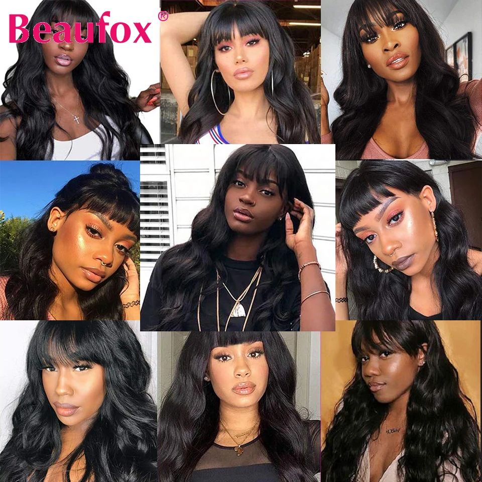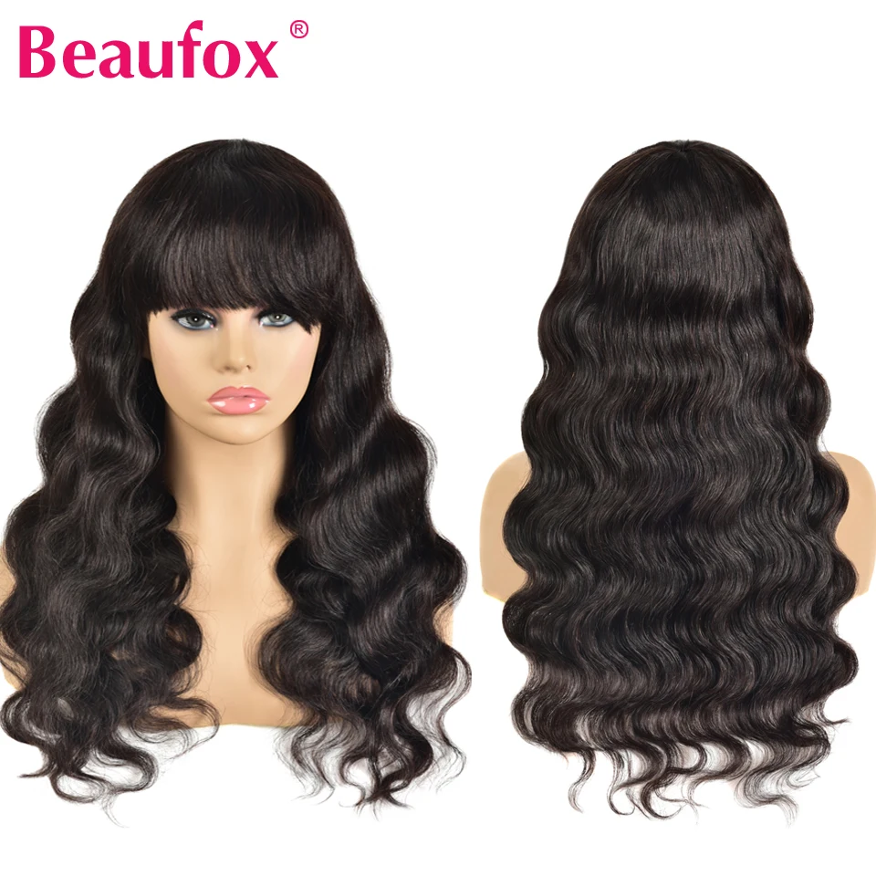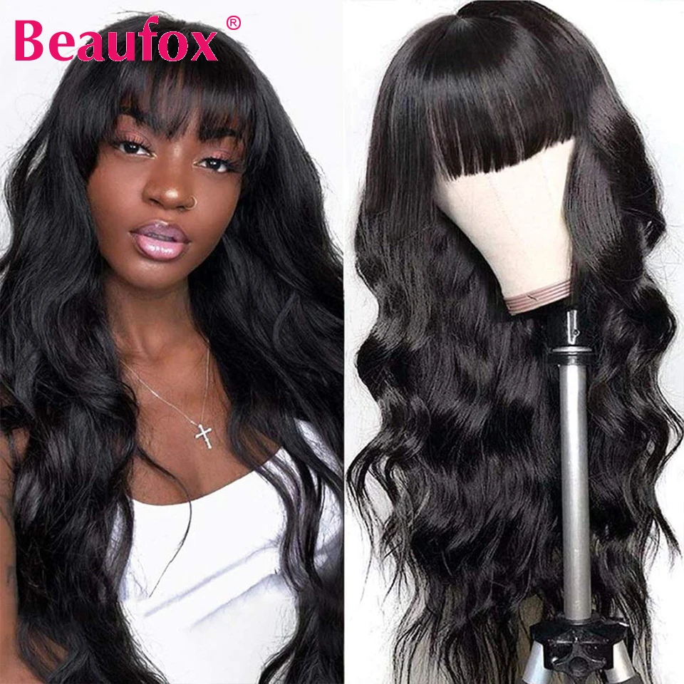 Beaufox объемные волнистые бесклеевые человеческие волосы парики с челкой малазийские парики с челкой для женщин Remy полные машинные человеческие парики