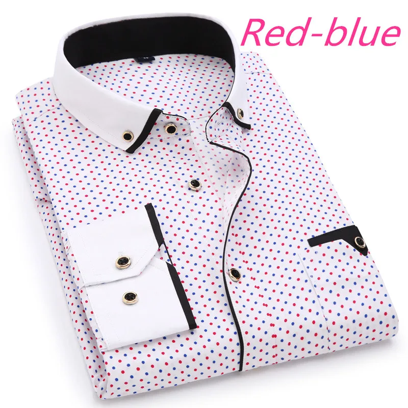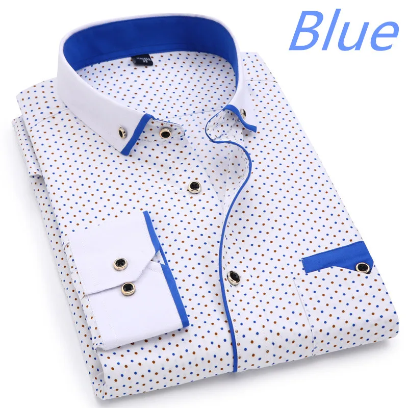 Рубашка мужская с принтом в горошек, модная повседневная мягкая удобная дышащая ткань, Приталенный топ с длинным рукавом для молодежи, весна-осень, 2021