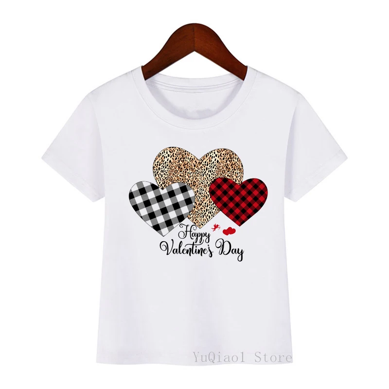 Футболка детская летняя с леопардовым принтом, сердечками и надписью на День святого Валентина