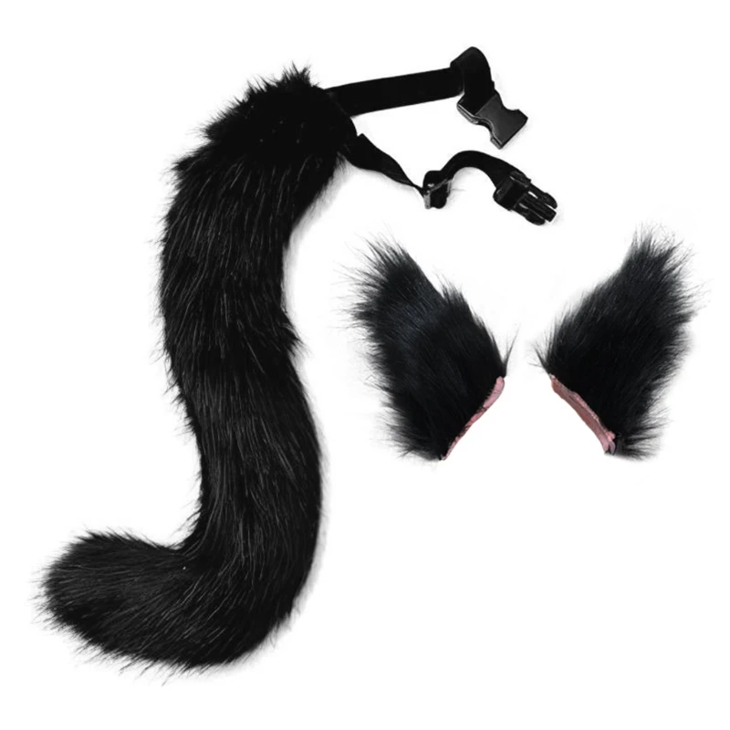 Плюшевые кошачьи уши заколка для волос пушистый хвост Волка с колье из искусственной кожи Чокер Ожерелье Набор Аниме животных Косплей Костюм