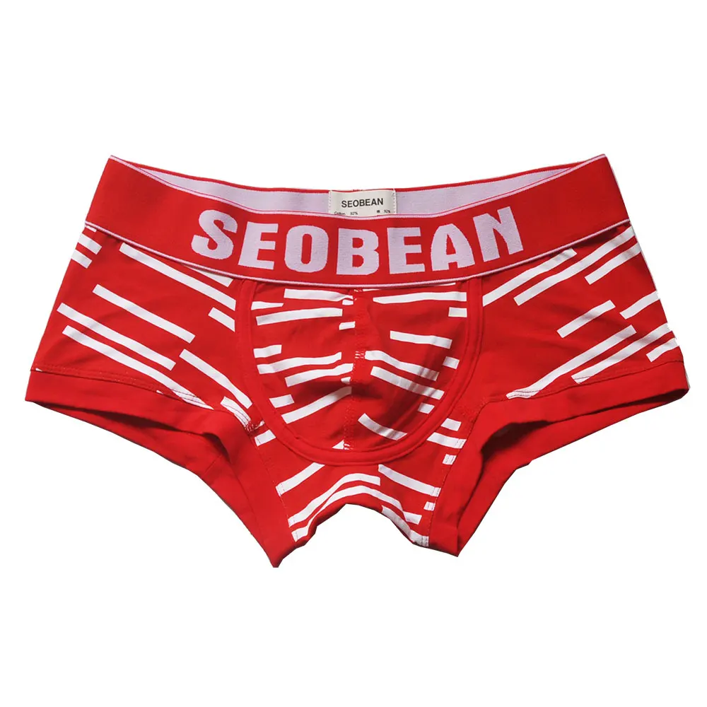 SEOBEAN Hibbin мужские цветной хлопок полосатый плоский угол трусик...