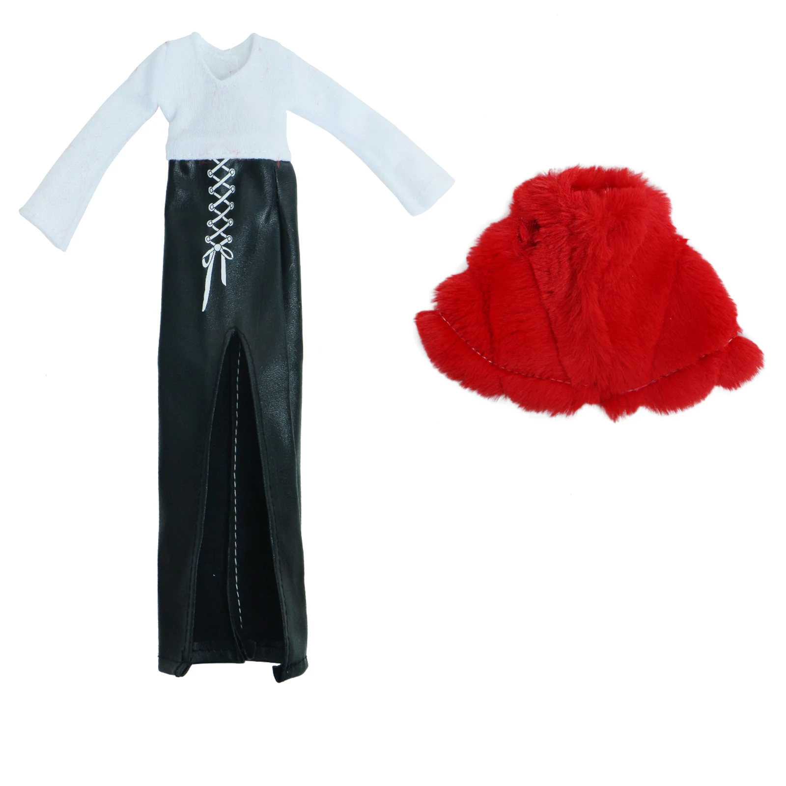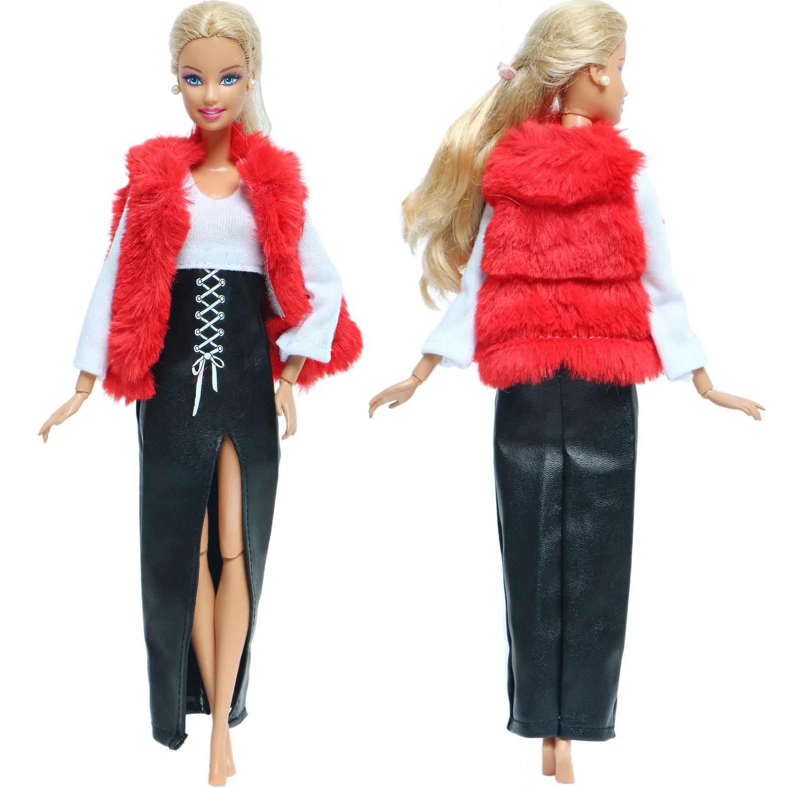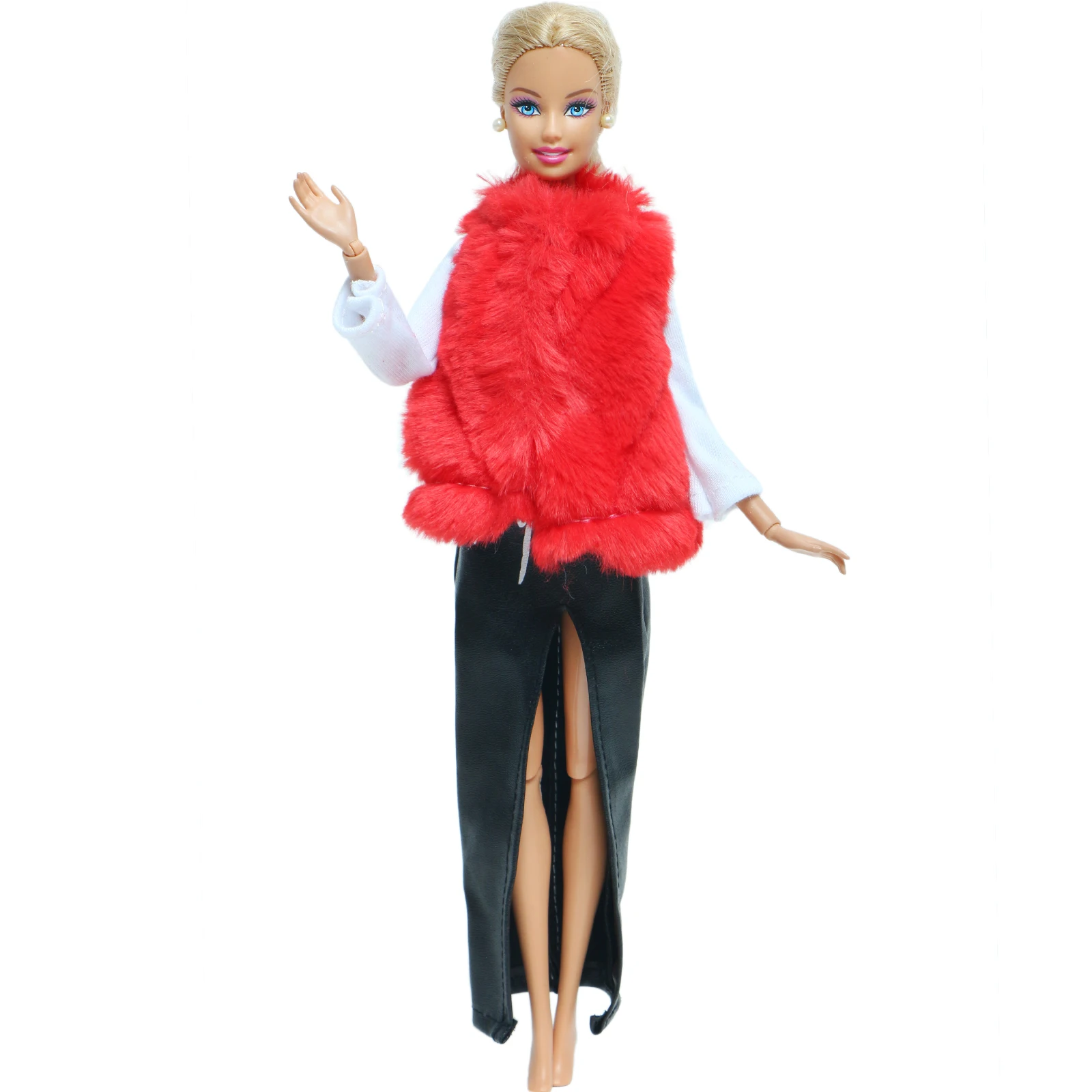 Модный наряд для куклы, красное пальто, жилет из мягкого меха, куртка, топы, платье, зимняя вечеринка, теплая одежда, аксессуары для кукол Барби, детские игрушки