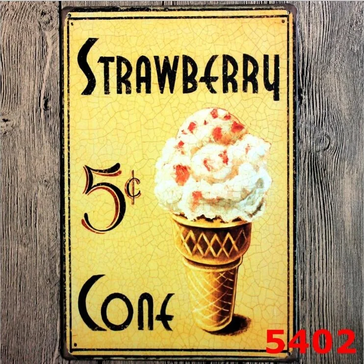 8x12 дюймов Клубничное мороженое металлическая жестяная вывеска из тостолистой стали Винтаж украшения дома постер на стену Оловянная табличка для кафе клуб Декор