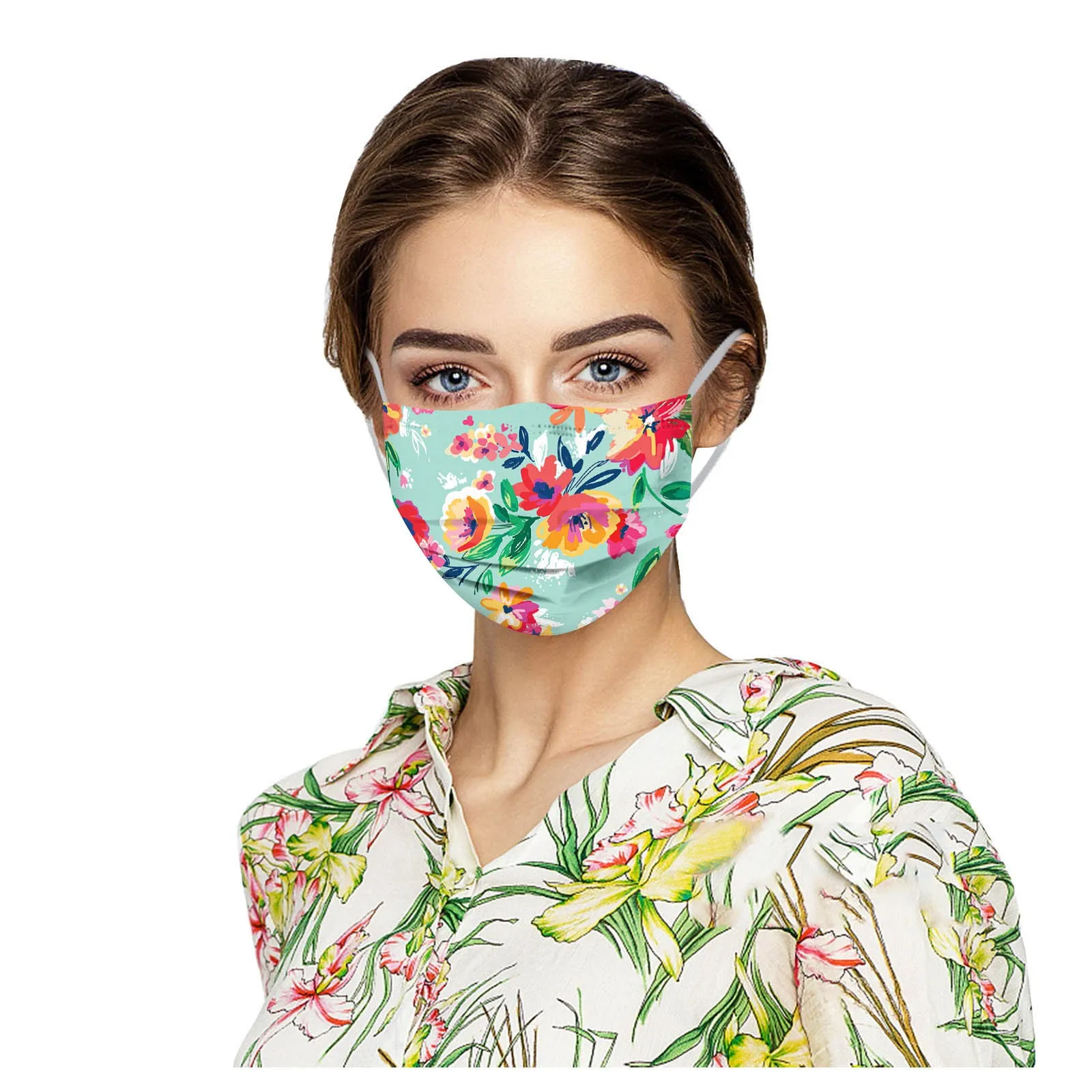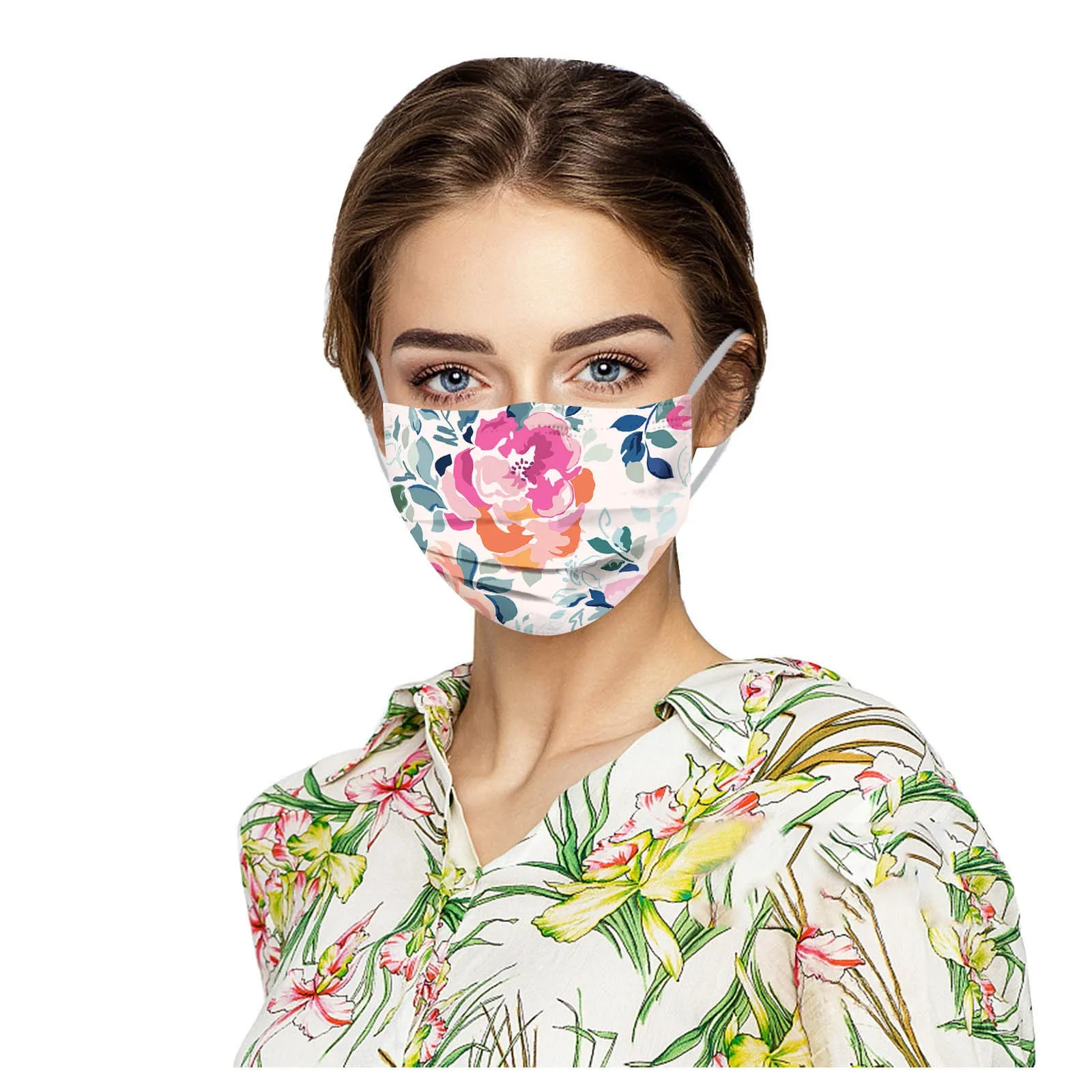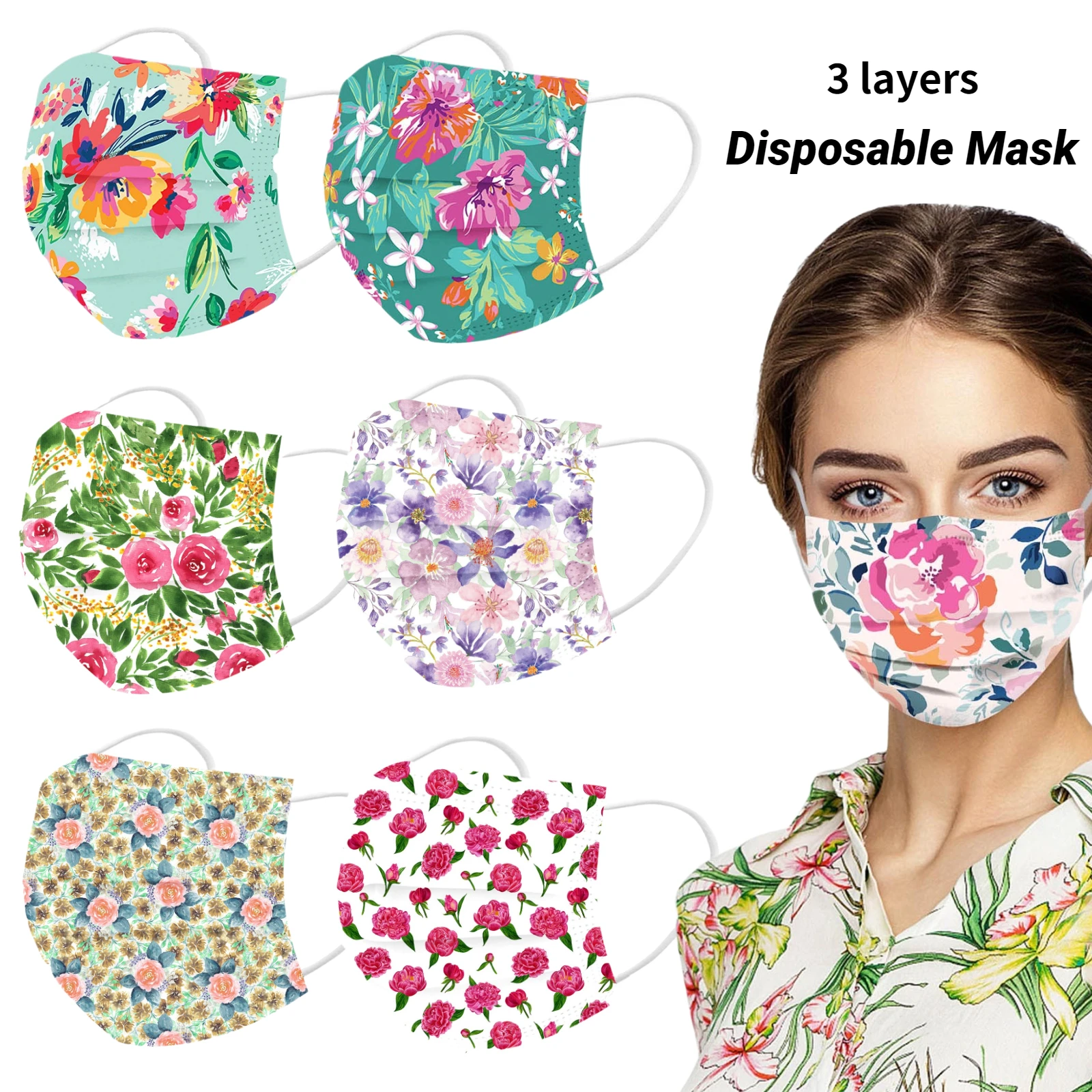 Маска одноразовая, 3 слоя, с цветочным принтом, дышащая, 10-100 шт.