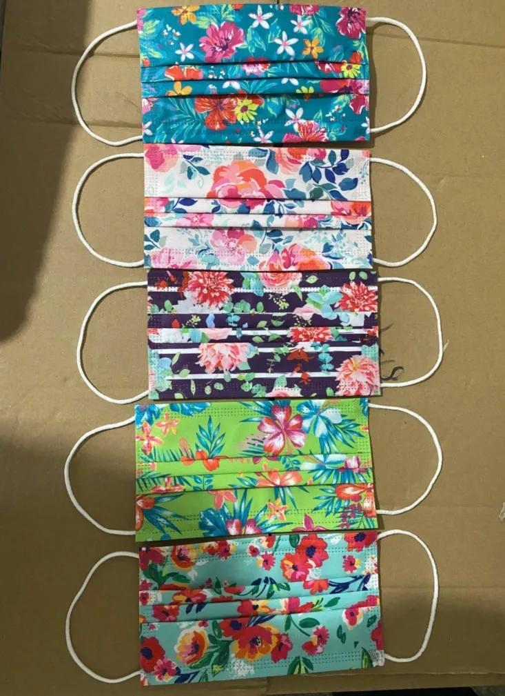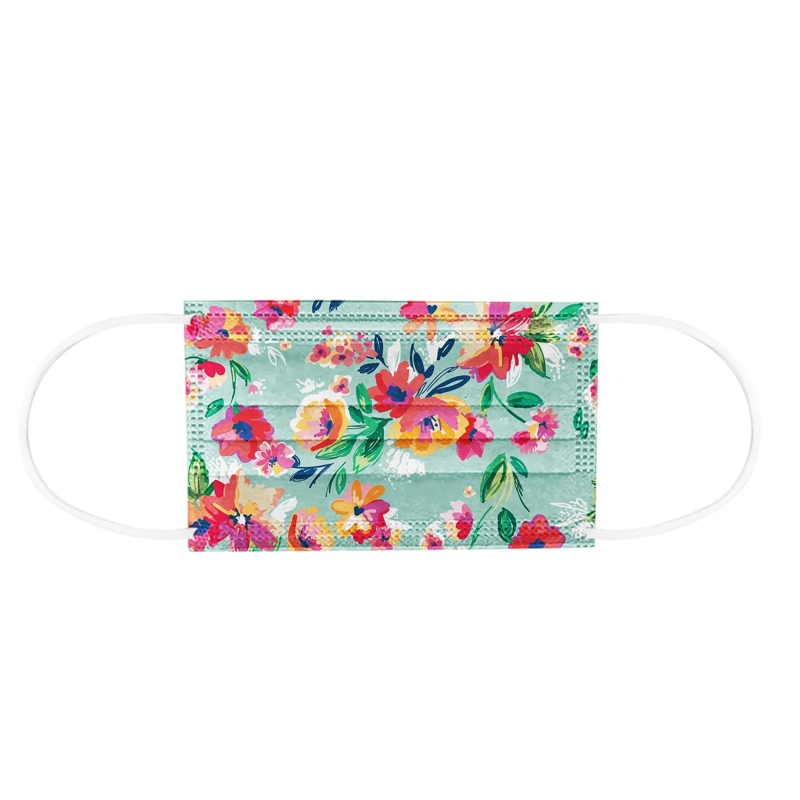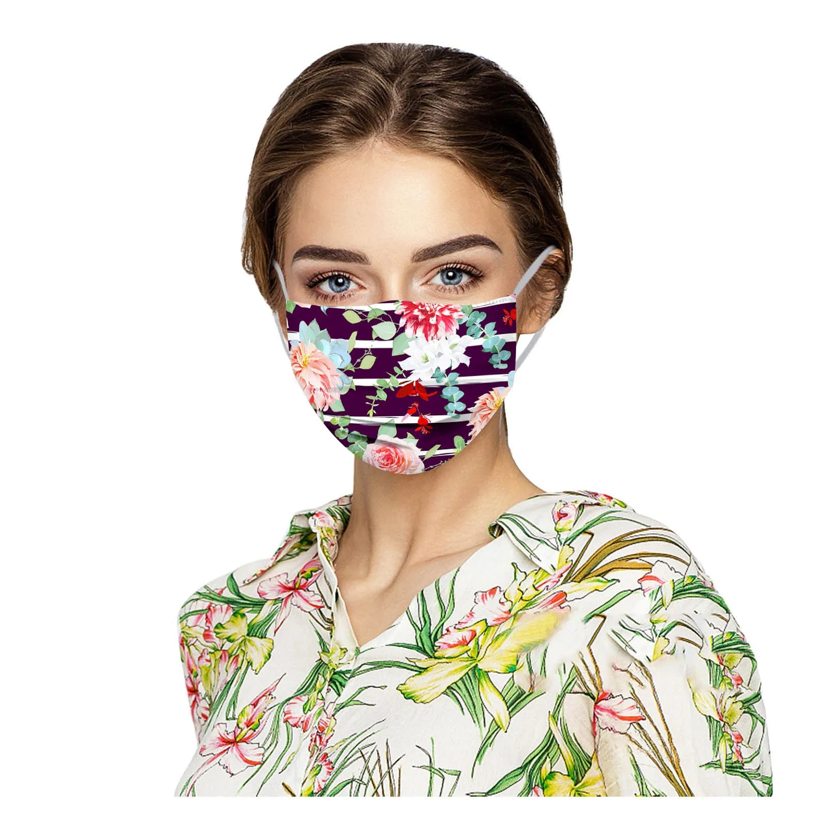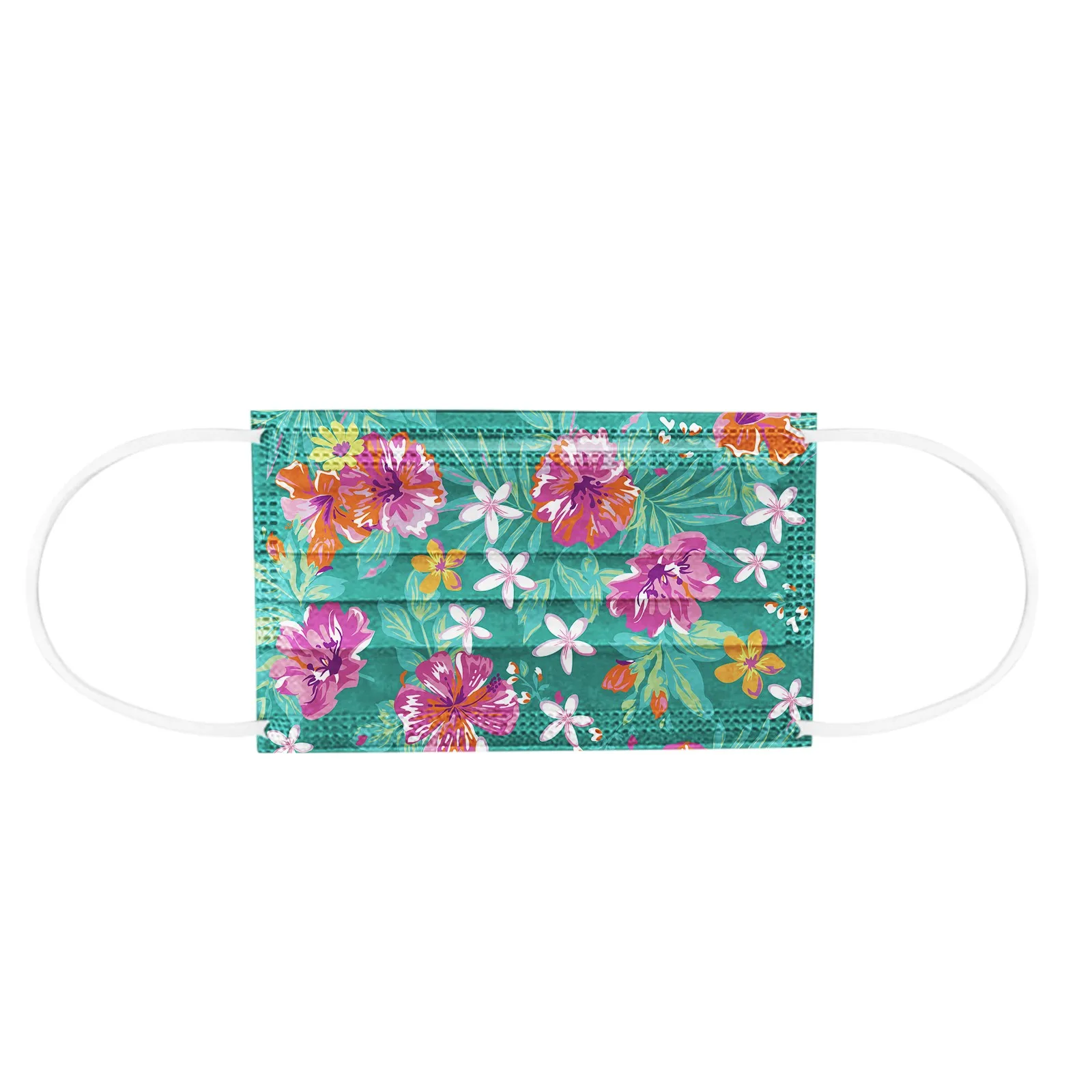 Маска одноразовая, 3 слоя, с цветочным принтом, дышащая, 10-100 шт.