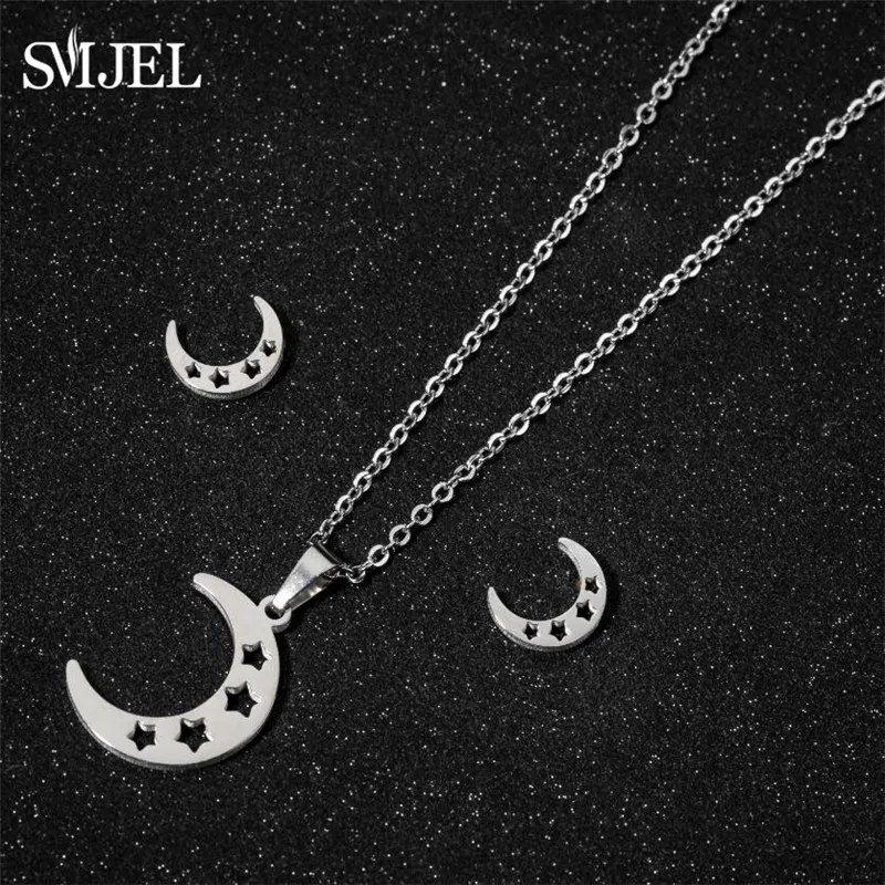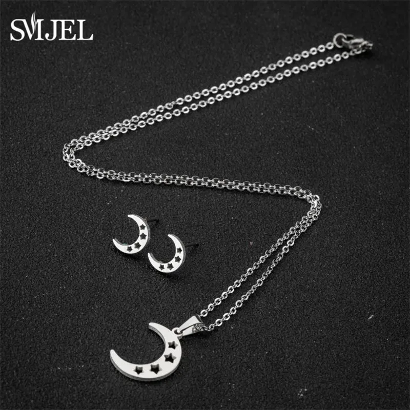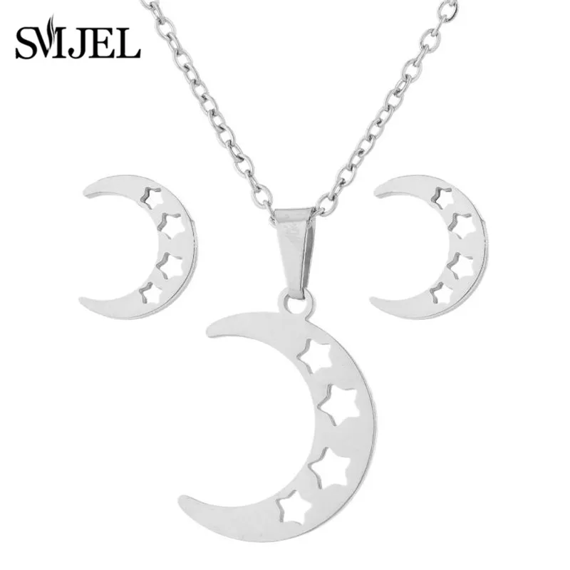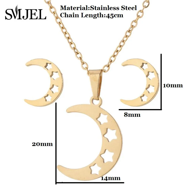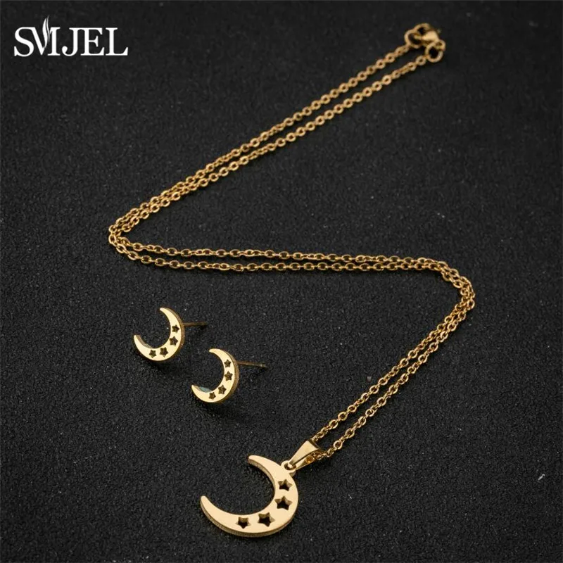 Из Нержавеющей Стали Изогнутый лунные ожерелья и серьги для женщин модные золотые Романтический с изображением луны и звезд, серп рог, высокое качество, комплект ювелирных изделий