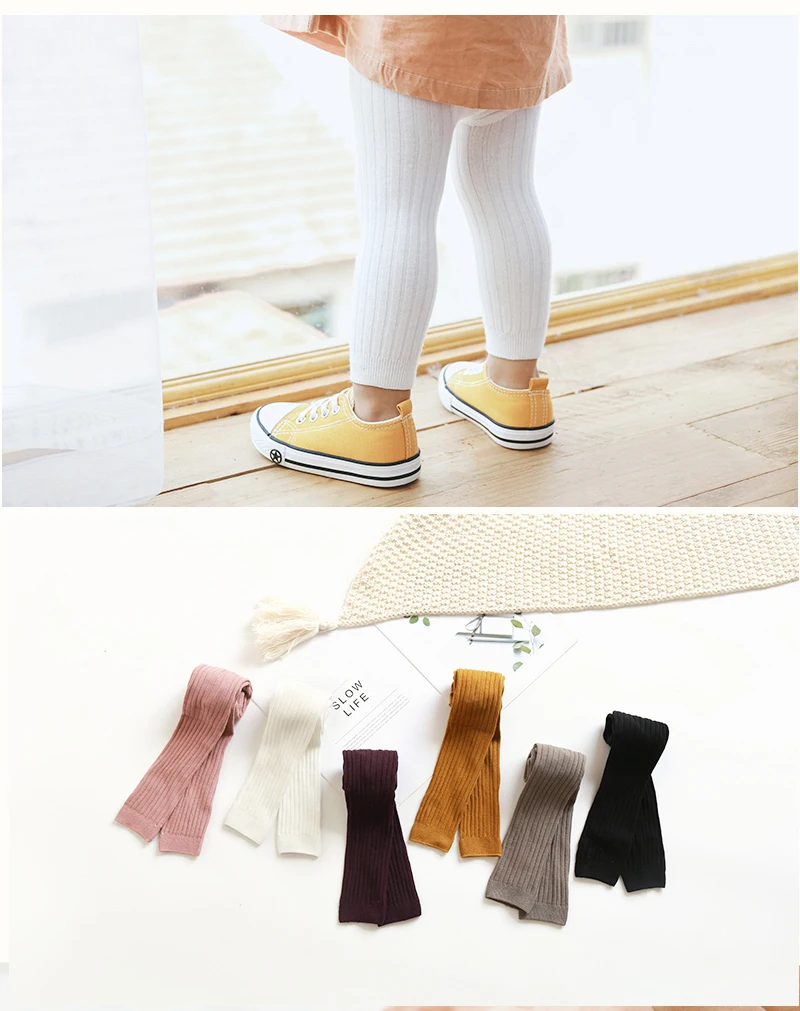 Леггинсы для девочек, хлопковые трикотажные, эластичные, на веснуосень
