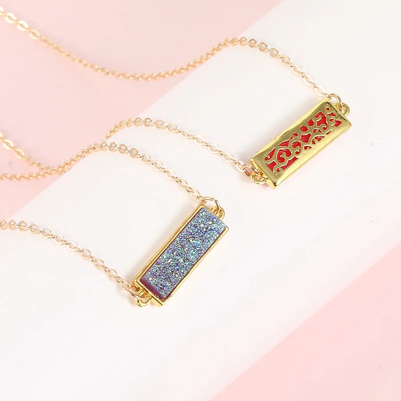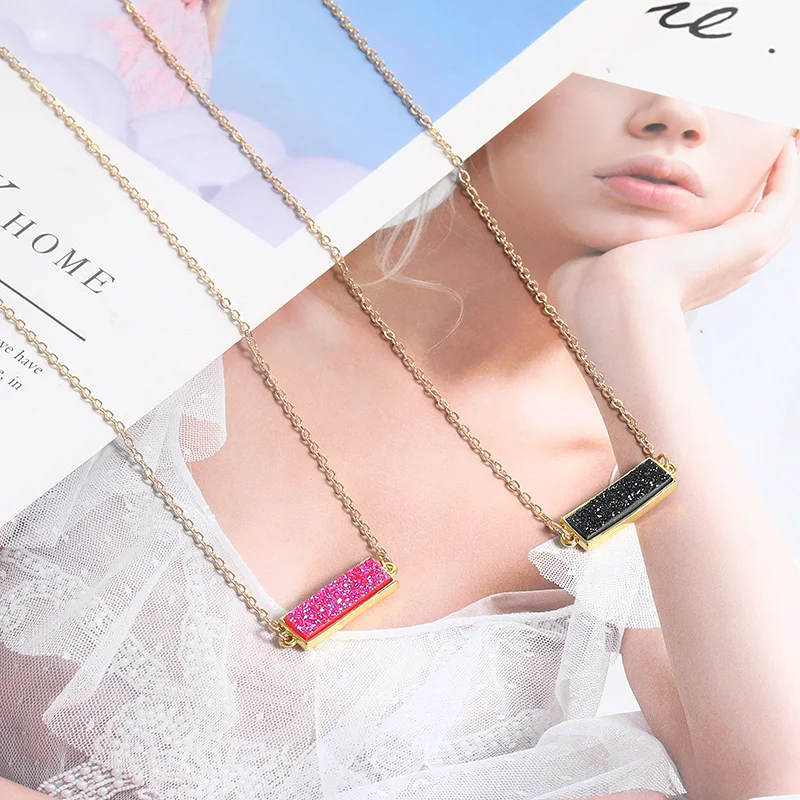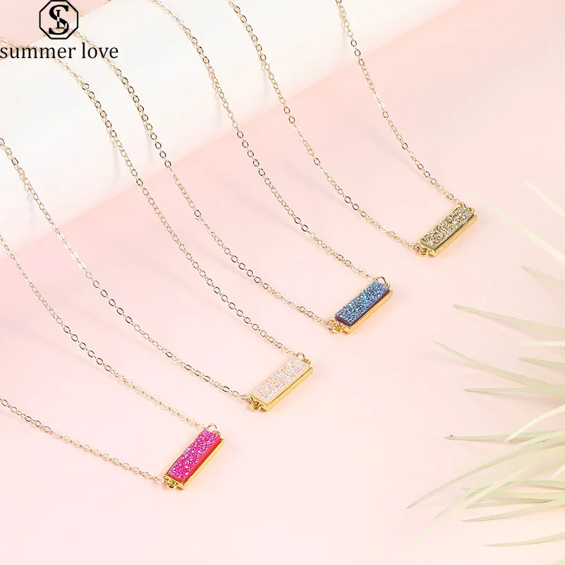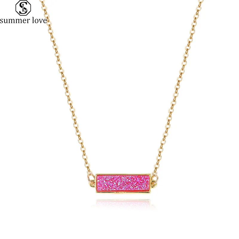 Минималистское ожерелье с подвеской в виде прямоугольника из смолы для женщин, яркие блестящие подвески, золотого цвета, цепочка, ожерелье, ювелирные изделия