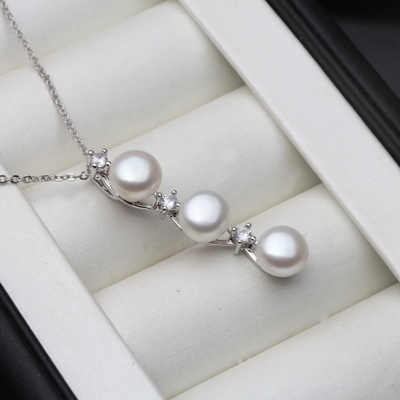 Женское Ожерелье с кулоном из белого пресноводного жемчуга, ожерелье-цепочка из серебра 925 пробы с натуральным жемчугом, Изящные Ювелирные украшения