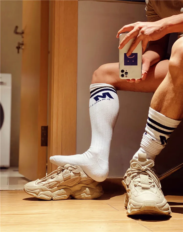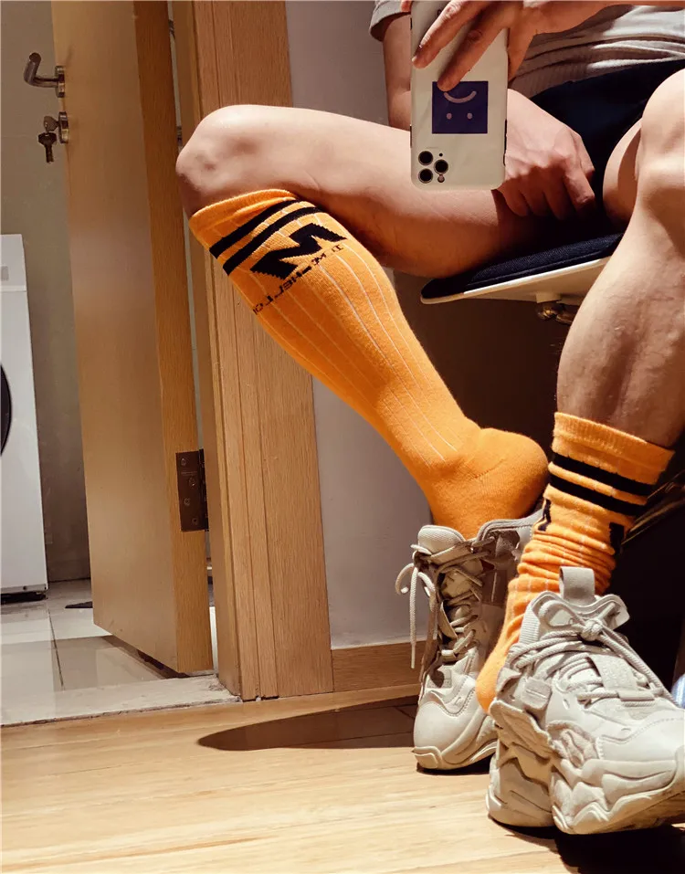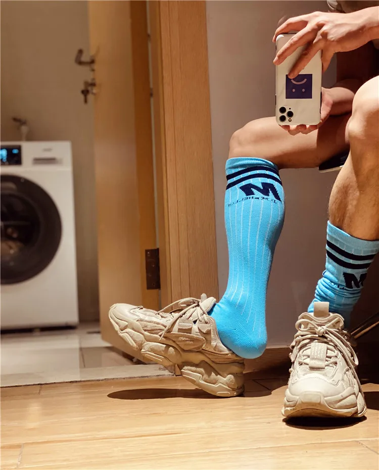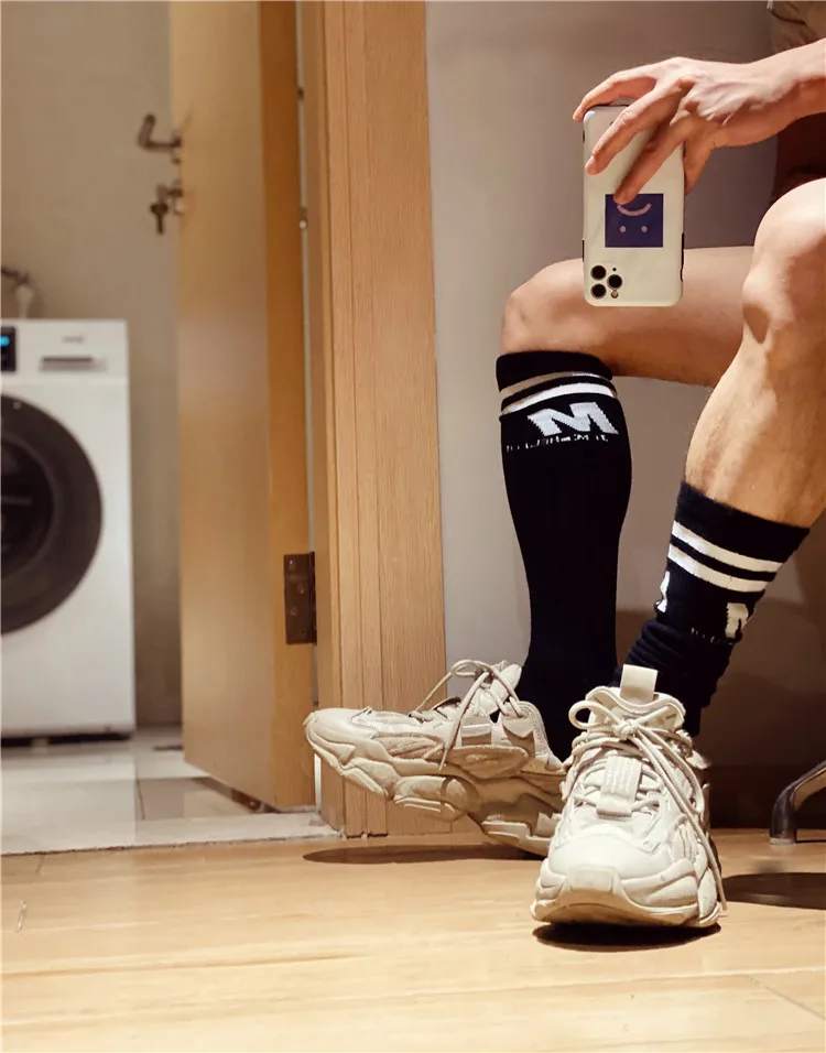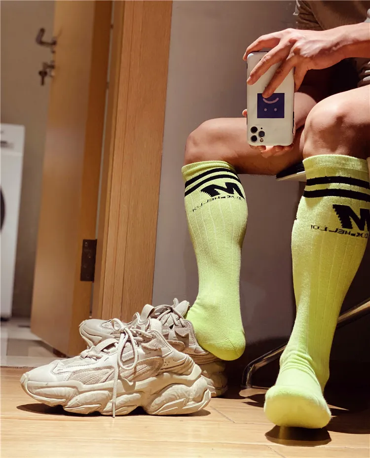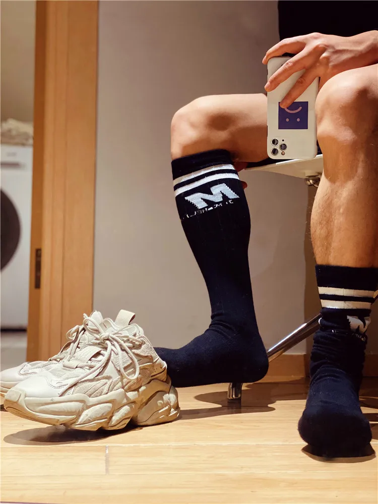 Носки мужские высокие, полосатые, однотонные, с надписью, Длинные