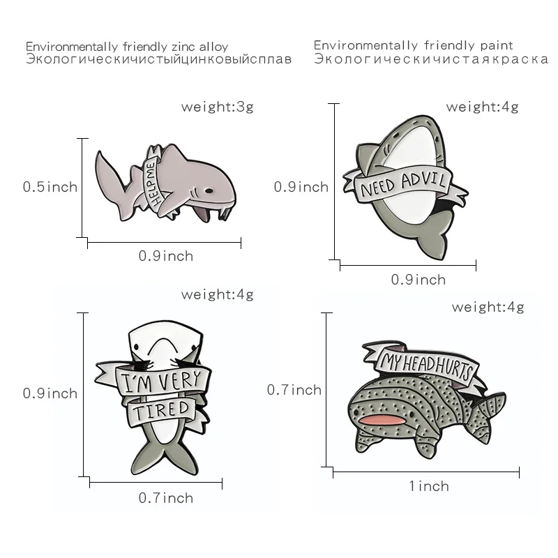 Брошь GDHY Shark с тигром HLEP ME NEED ADVIL, я очень устал, у меня...