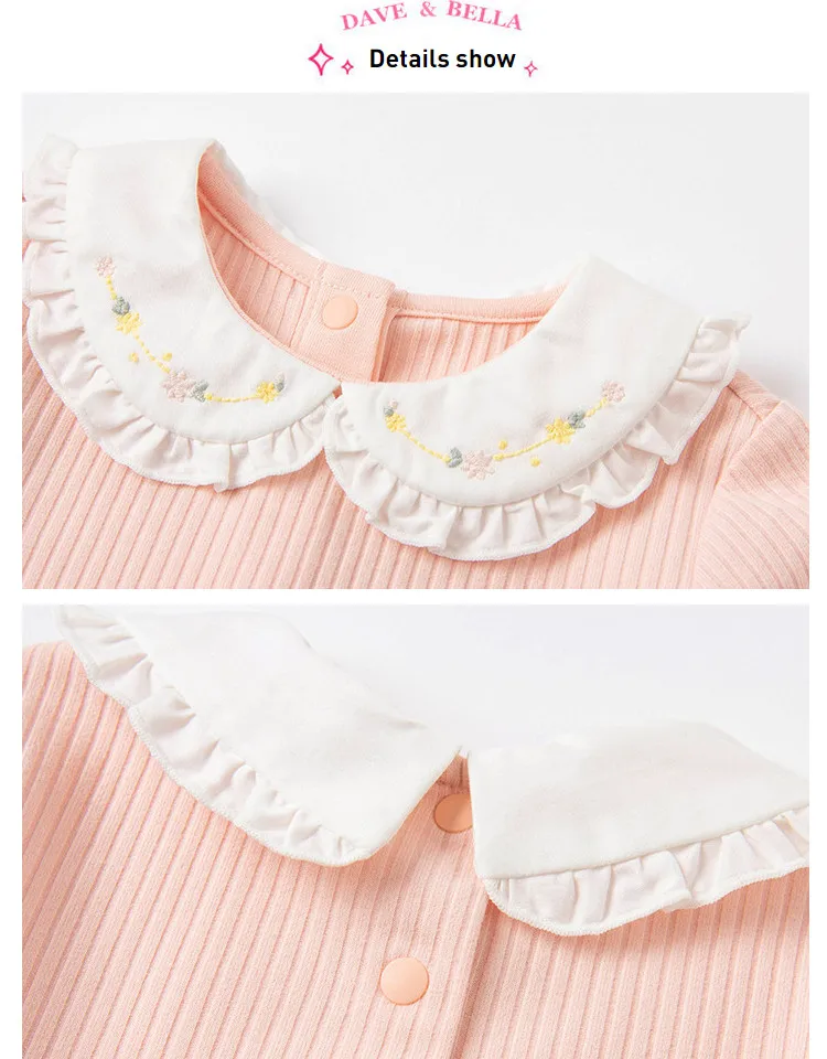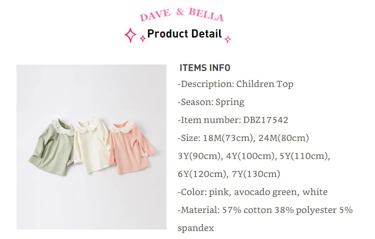 DBZ17542 нижнее белье в стиле бренда dave bellaвесна, сказочное Детское Платье милое платье с вышивкой на кнопках для малышей, футболка для детей, топы для девочек, детская мода, футболки