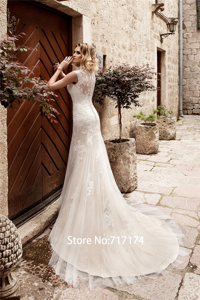 Без рукавов с кукольным воротником Русалка свадебное платье цвета шампанского Аппликация Кружева Тонкий Свадебное платье noivas Свадебные платья noiva