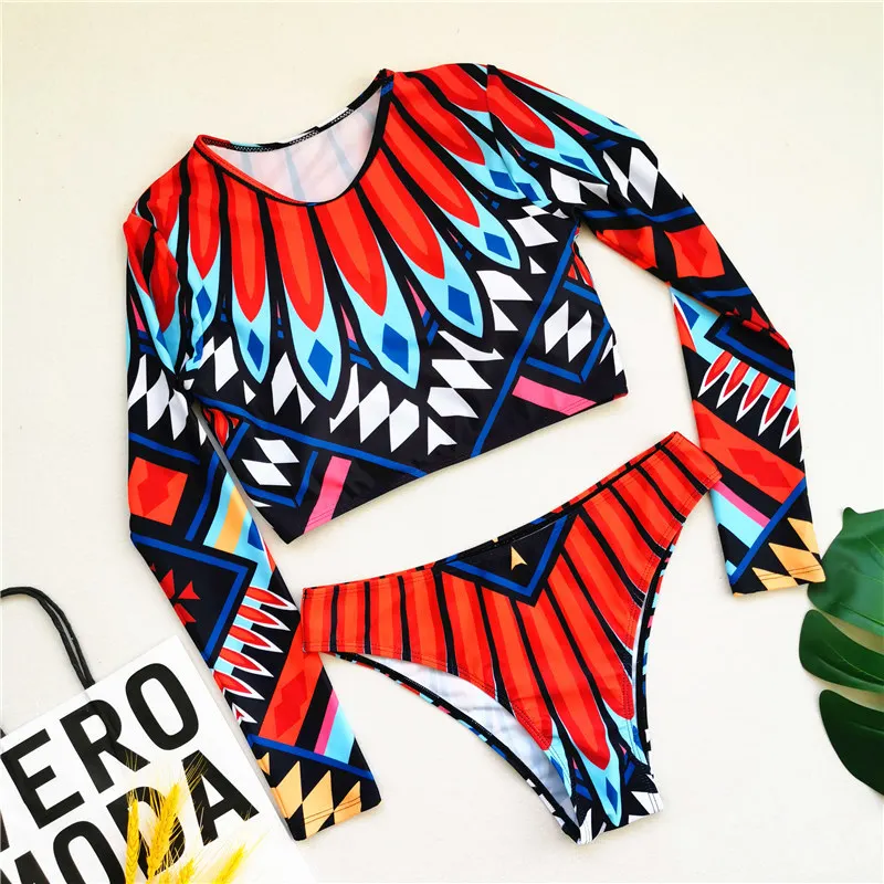Купальный костюм в африканском стиле из двух предметов, комплект бикини с длинными рукавами, купальный костюм с племенным принтом, женские купальные костюмы, женский купальник