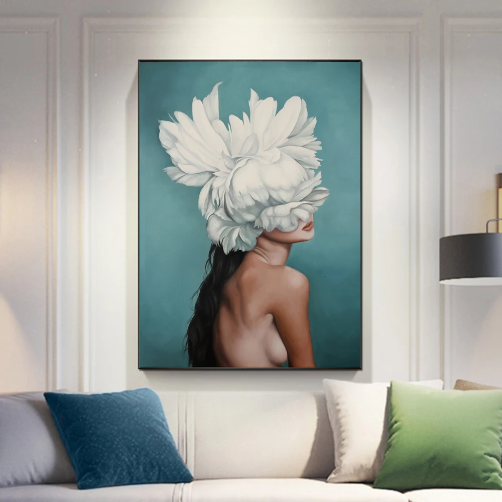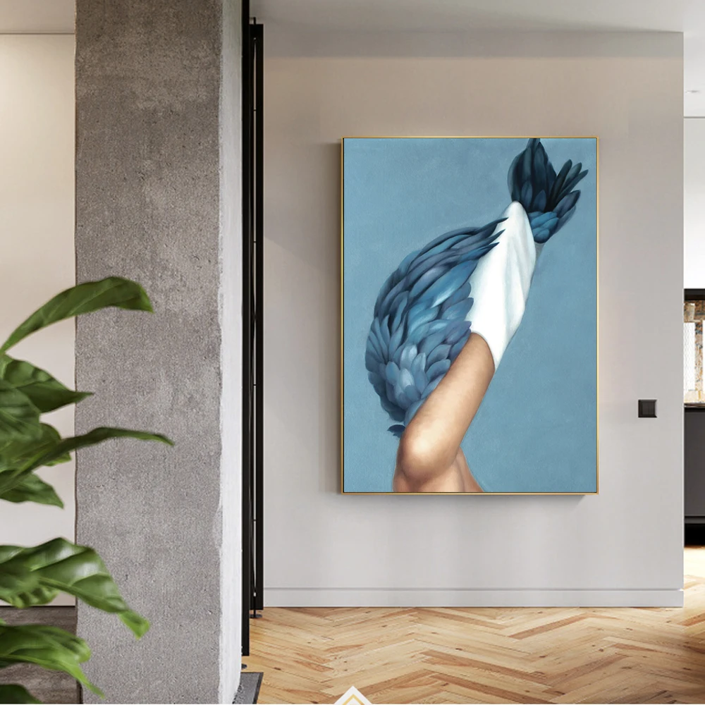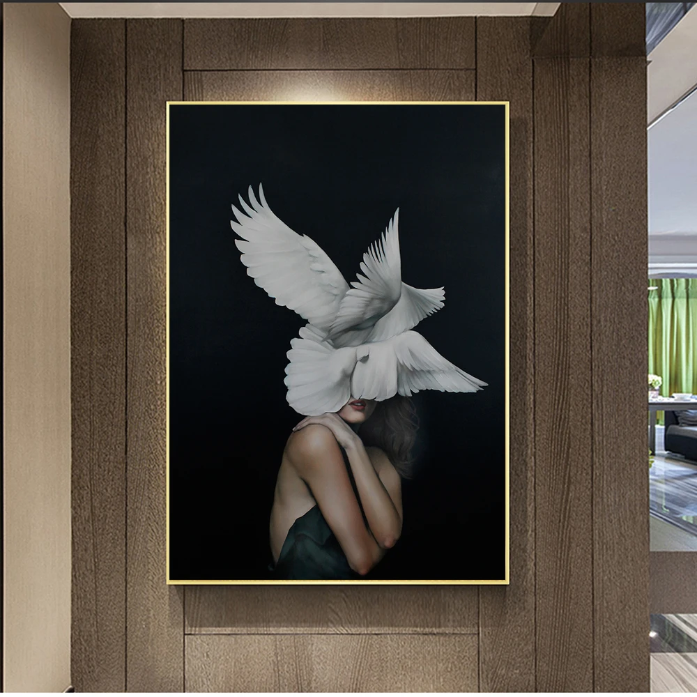 Голова, цветок, перо, крылья, девушка, искусство, печать на холсте, картина, Скандинавская фигурка, Женская гостиная, Настенная картина, Постер для украшения дома