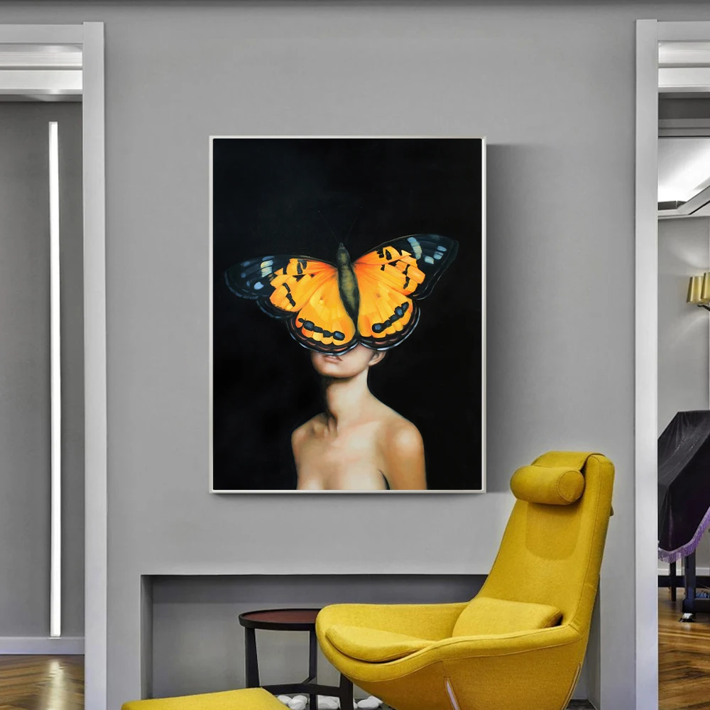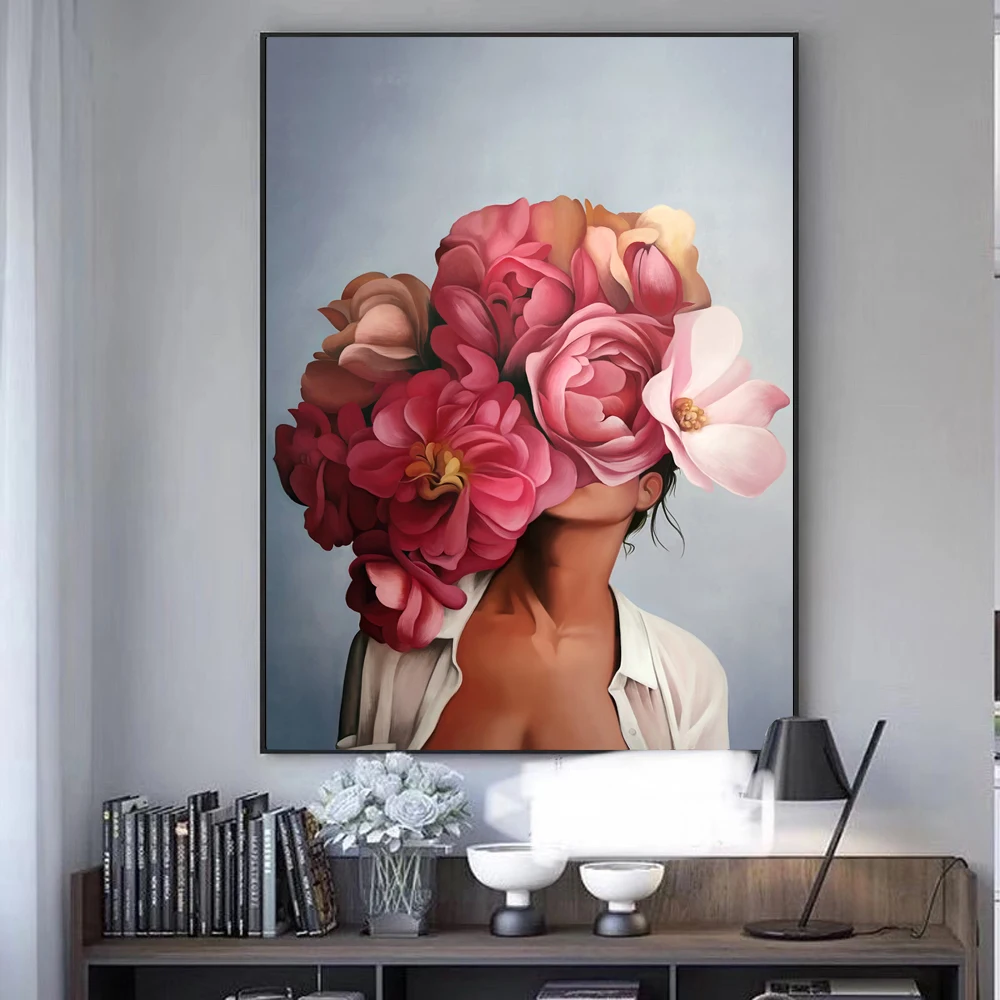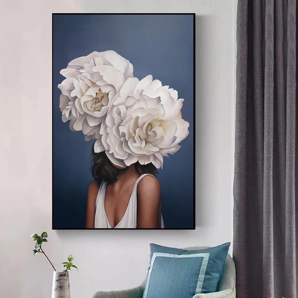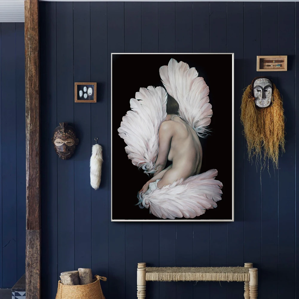 Голова, цветок, перо, крылья, девушка, искусство, печать на холсте, картина, Скандинавская фигурка, Женская гостиная, Настенная картина, Постер для украшения дома