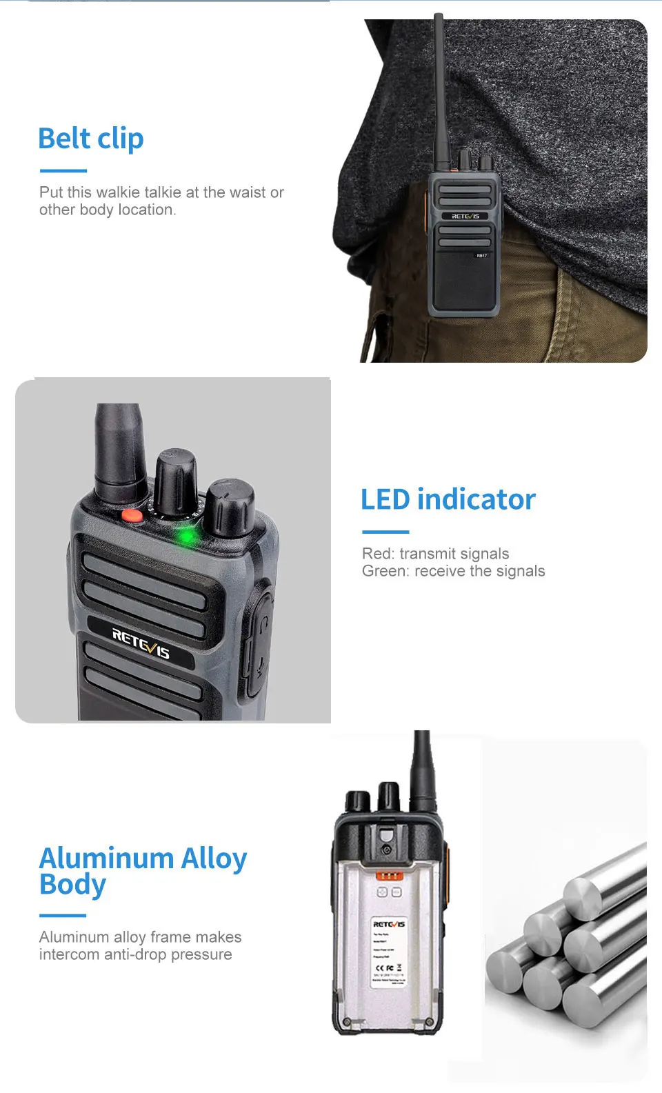 Retevis RB17/RB617 рация подходит для различных случаев и различных людей, может быть широко использована в большом торговом центре, ресторан, отель, кофейня, KTV, Бар, склад, управление собственностью, путешествия, охота и так далее.