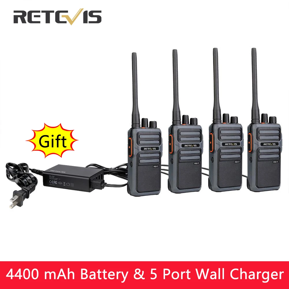 Радиорация Retevis RB17 PMR, 4 шт., 4400 мАч, долгий режим ожидания, портативные рации для отелей, ресторанов, охоты, двухстороннее радио