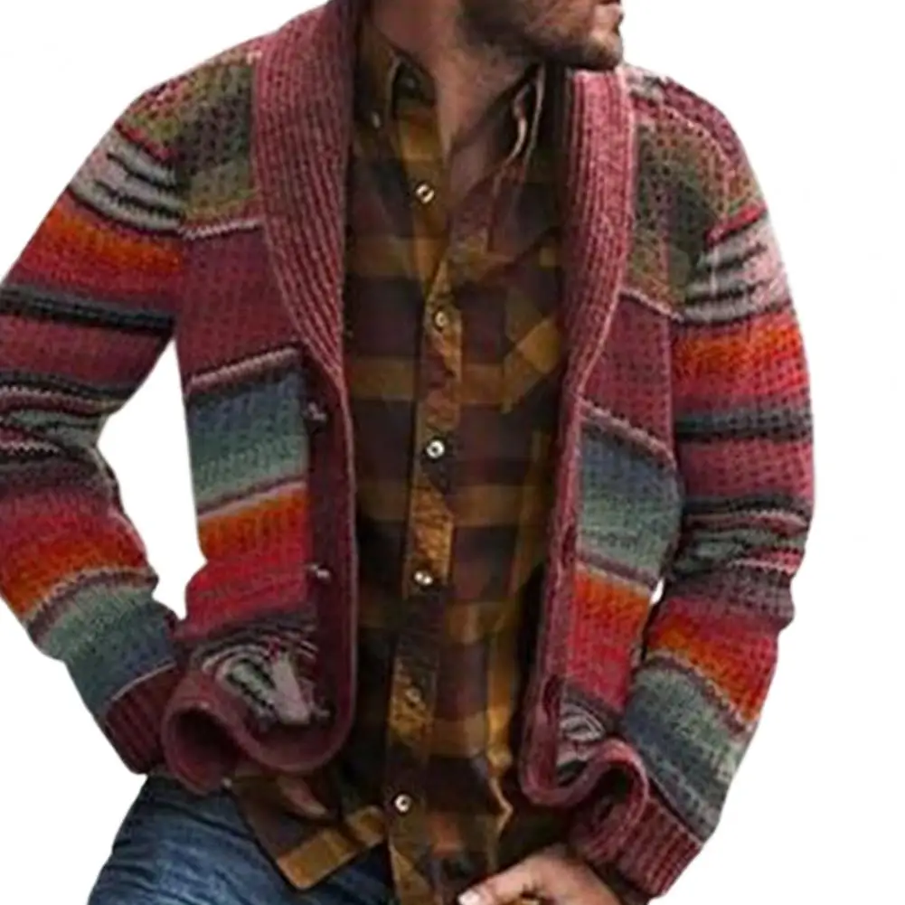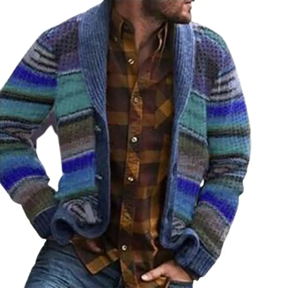 Свитер в западном стиле, кардиган, Мужская трикотажная одежда, осенний свитер в радужную полоску с цветными блоками, топы, мужские кардиганы, новинка 2020
