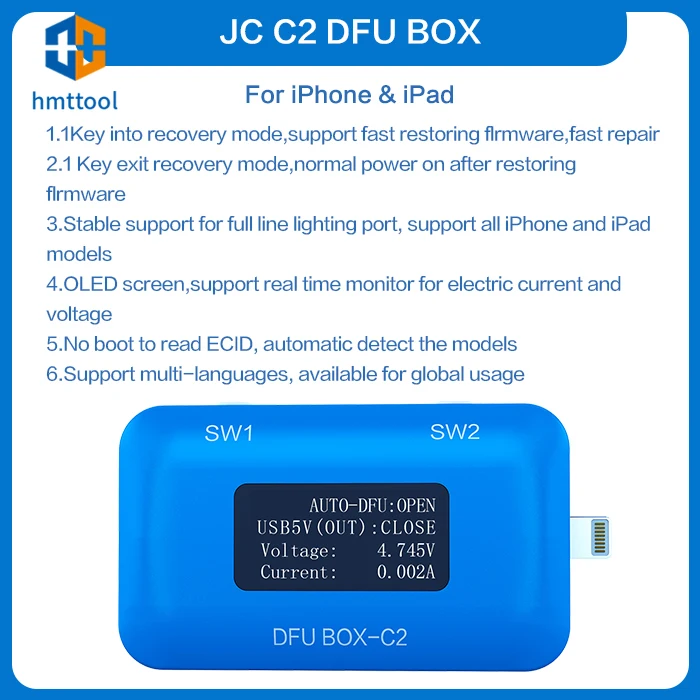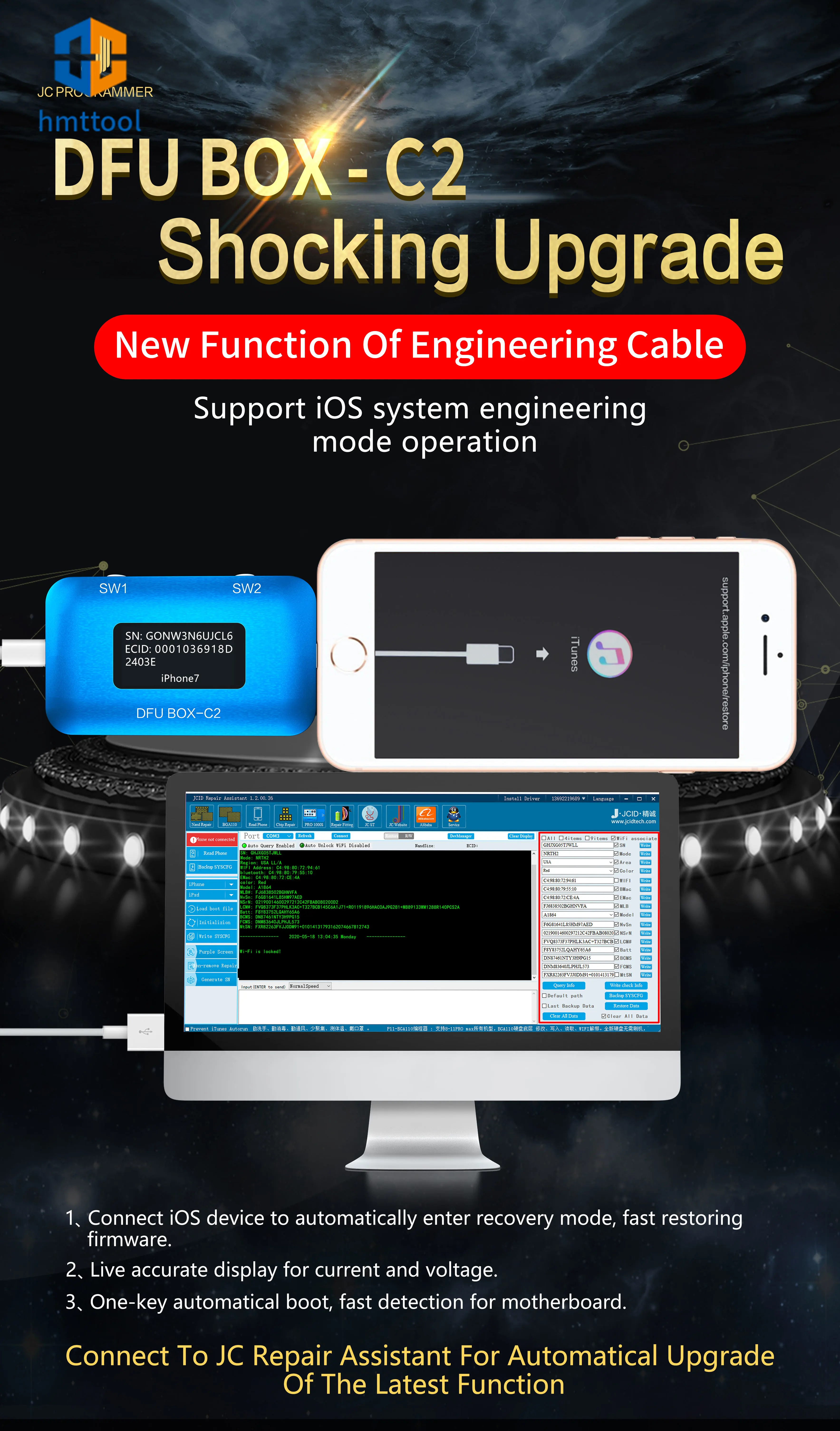 Лидер продаж, плата JC DFU BOX C2 для кабеля DCSD для IPhone и IPad, восстановление экрана одной кнопкой, перезагрузка IOS SN ECID, информация о модели
