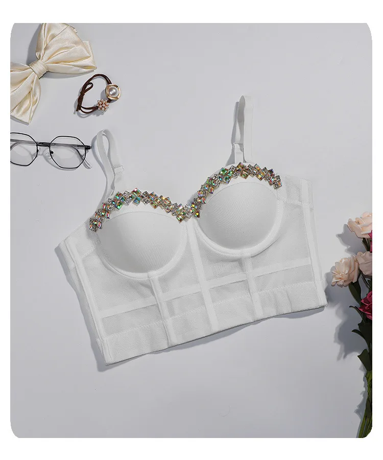 2021 Новое богемное Стиль камзол женский с блестящим брильянтовым Бисер сексуальный укороченный топ бюстье бюстгальтер ночного клуба вечерние безрукавки для Y781