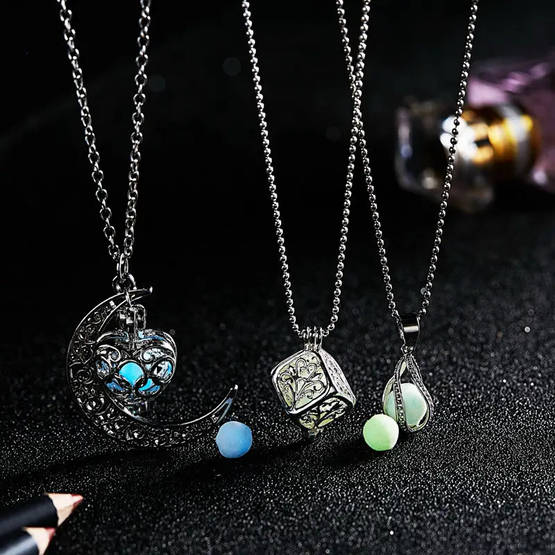 Модное ожерелье с подвеской, светящееся в темноте геометрическое ожерелье с Луной, подвеска для детей и женщин, серебряная цепочка, светящийся чокер с отверстиями, мужские ювелирные изделия