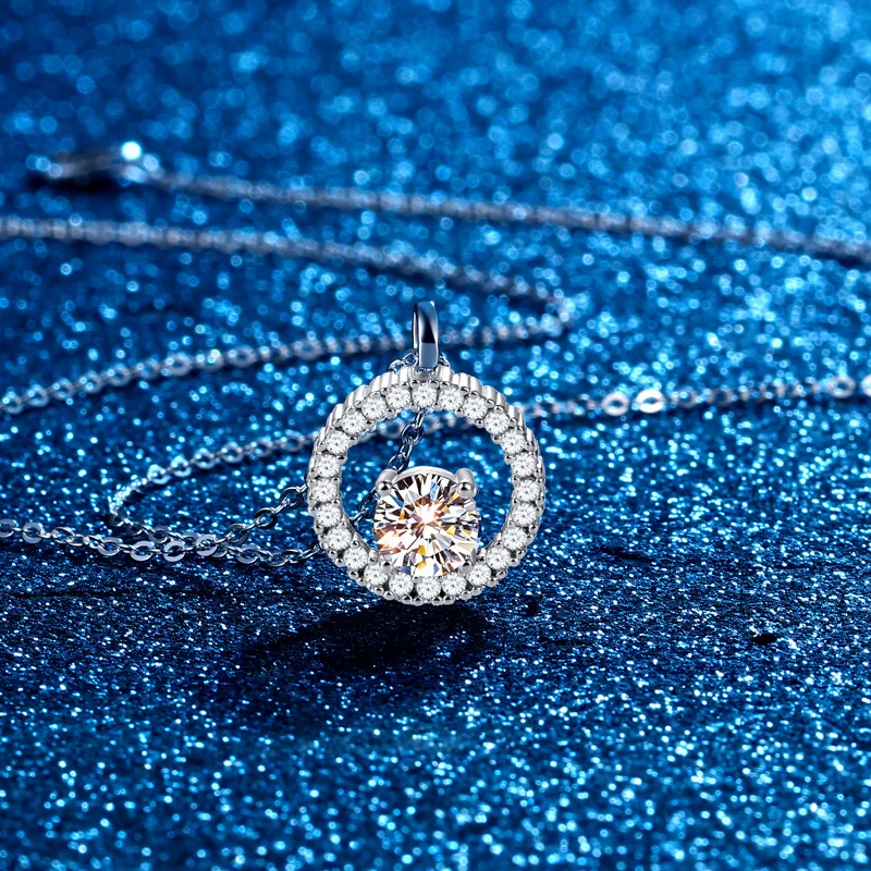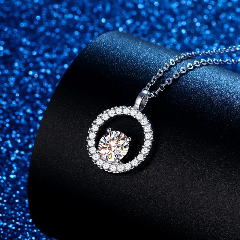 Ожерелье из серебра 925 пробы с круглым бриллиантом огранки 1 карат