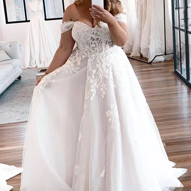 Новые свадебные платья размера плюс с открытыми плечами Свадебные п...