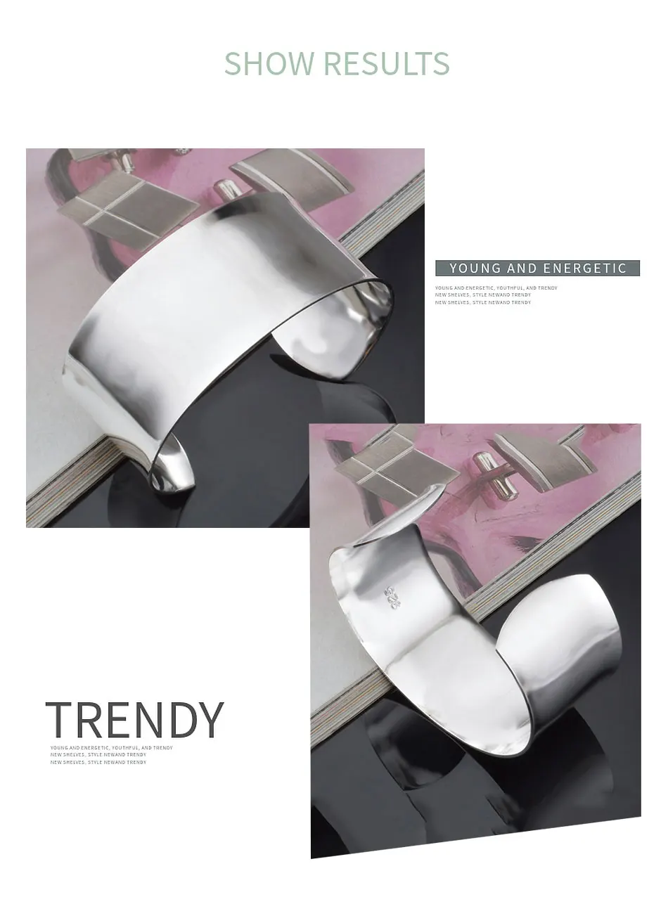 Браслет на руку мужскойженский, гладкий, 30 мм, серебро 925 пробы