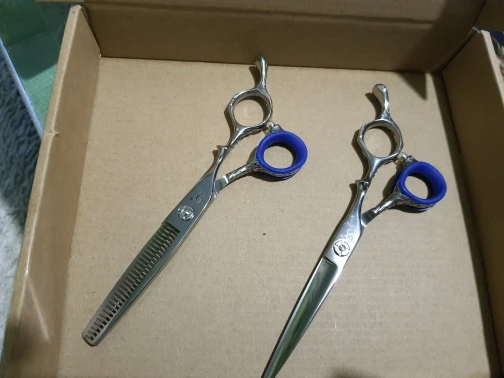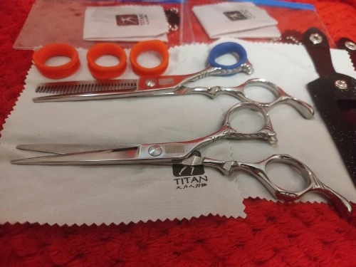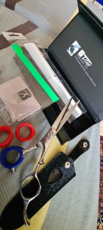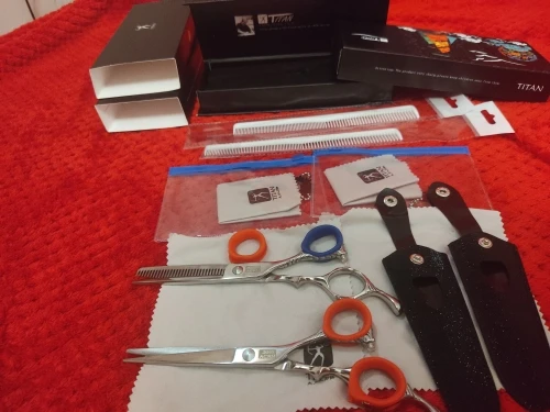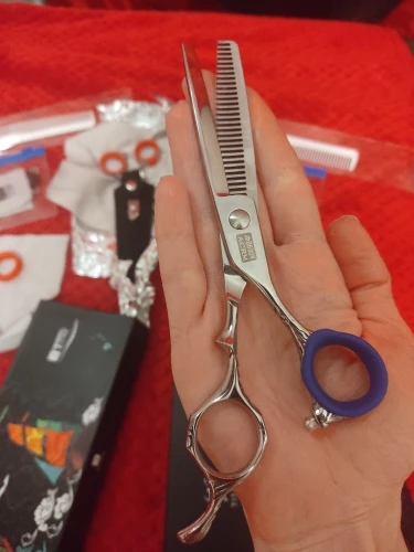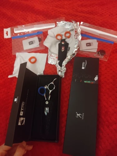Ножницы великолепные! Отличный срез. Удобные в руке. Я очень рада быстрой доставке. Всего13 дней шел заказ в Польшу. каждая пара в отдельной коробочке, ножницы в чехле, ещё продавец положил в подарок расчёски, колечки-вкладки и салфетку с ключом для каждой пары. Рекомендую!