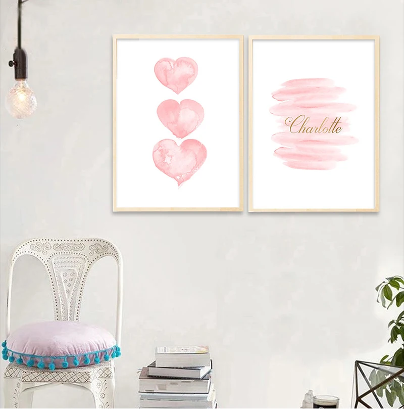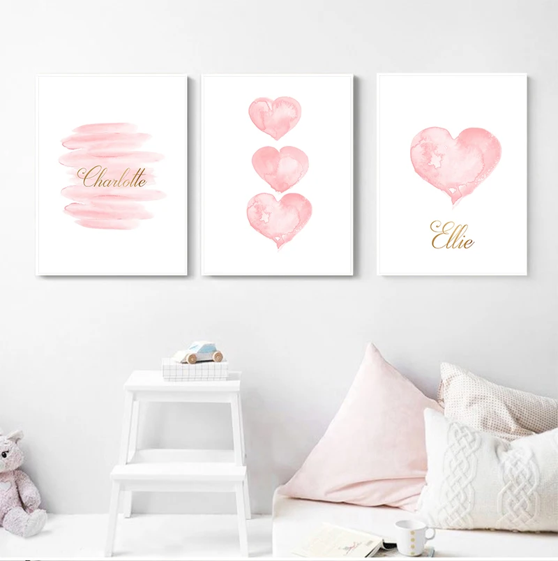 Детский Розовый любовь имя на заказ арт настенная живопись на холсте картина плакат для гостиной настенная для домашнего интерьера искусство украшения
