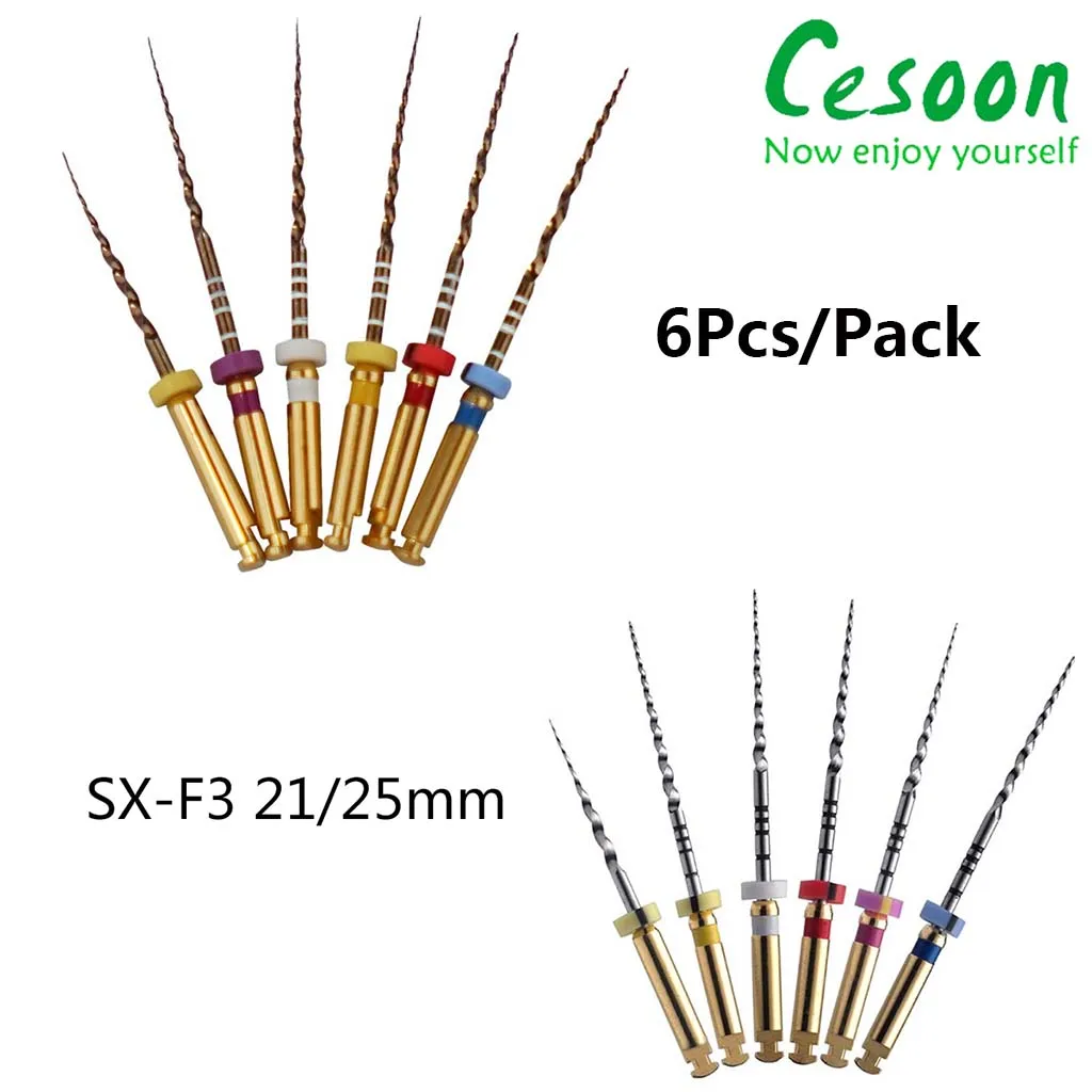 Стоматологический эндододонтический нити-напильник Cesoon 6 шт.упак. Endo X-Pro, золотые конусные наконечники, гибкий напильник, 2125 мм, стоматологические материалы
