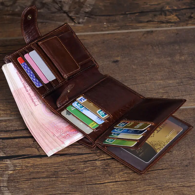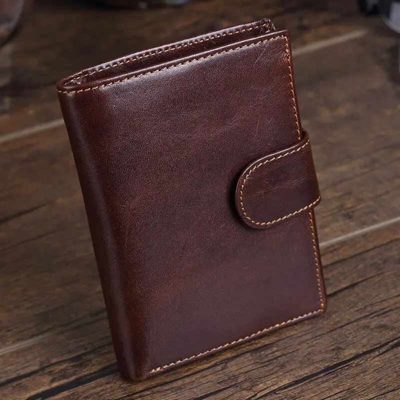 Кошелек мужской кожаный, винтажный, компактный, с зажимом для карт, из искусственной кожи