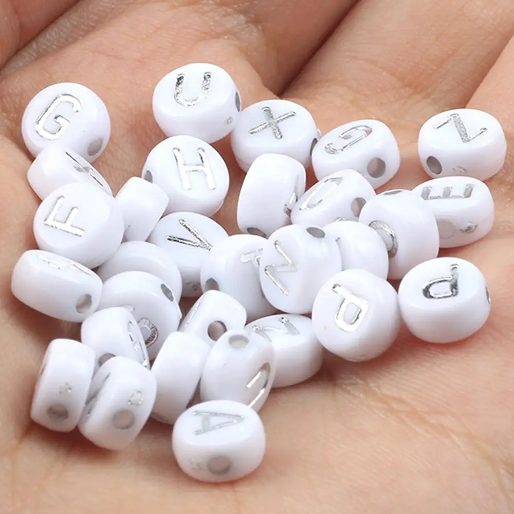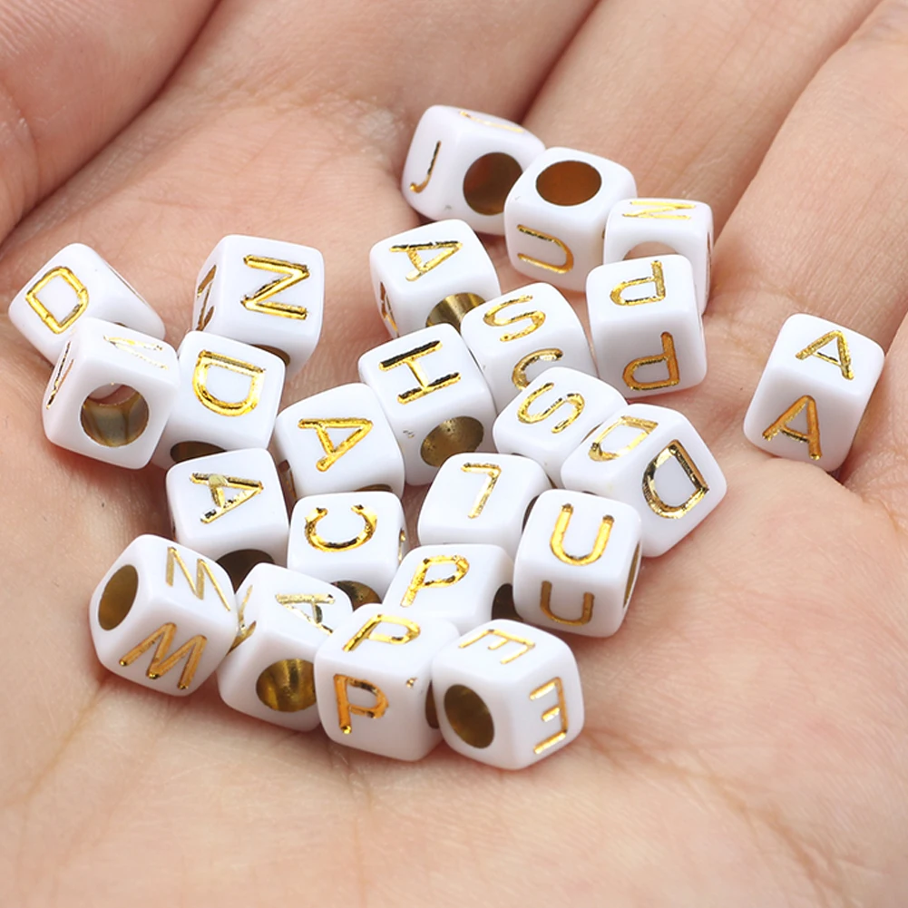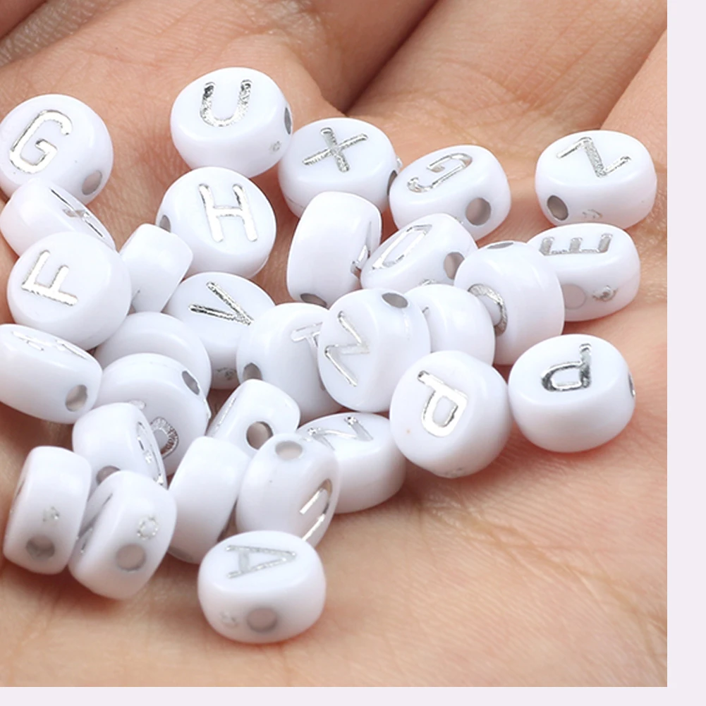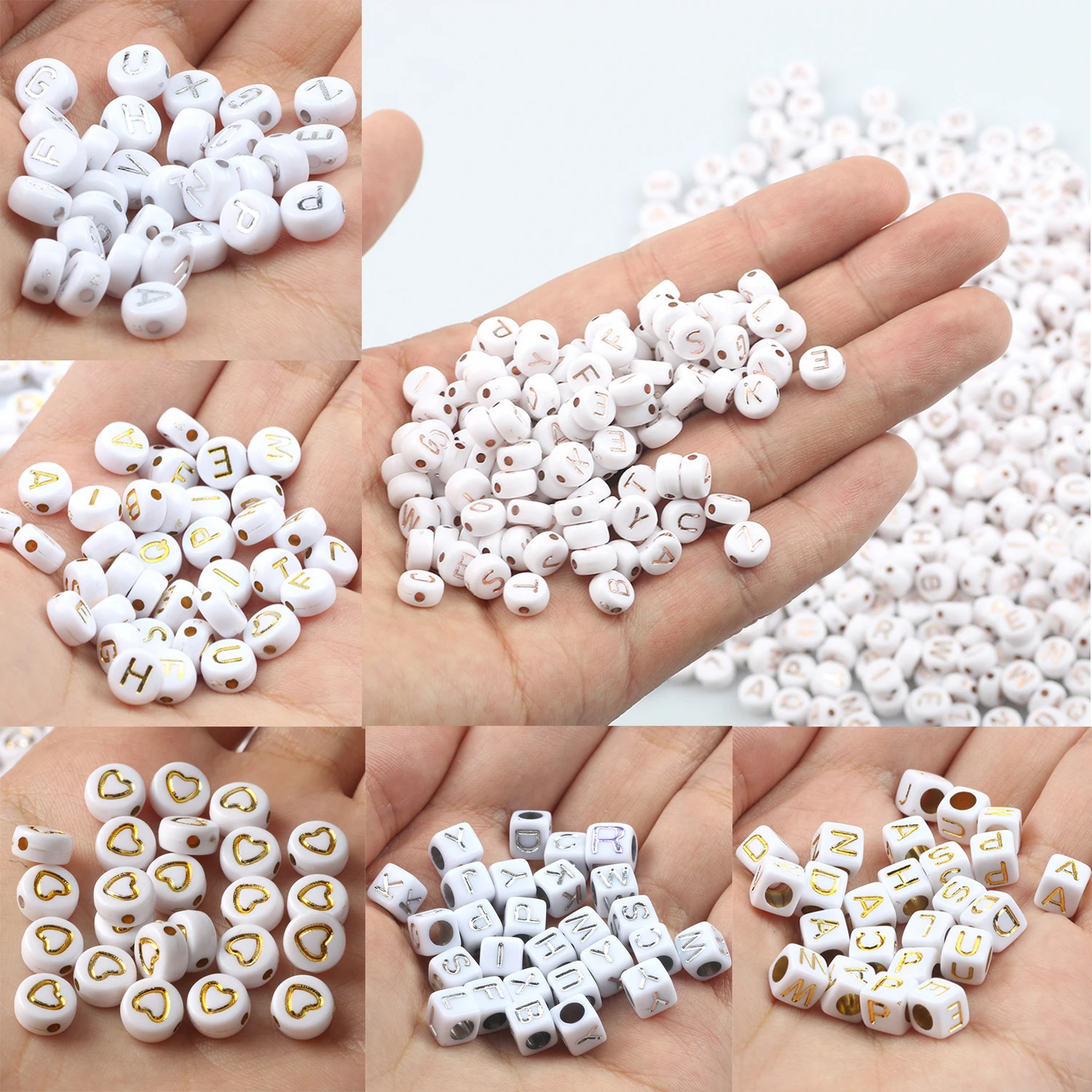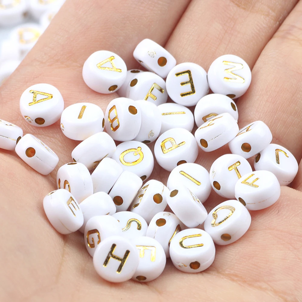 4x7 мм 200 шт. 26 букв алфавита белые акриловые бусины в виде золотых букв Круглый Свободные Spacer Бусины для изготовления ювелирных изделий Diy Детский браслет