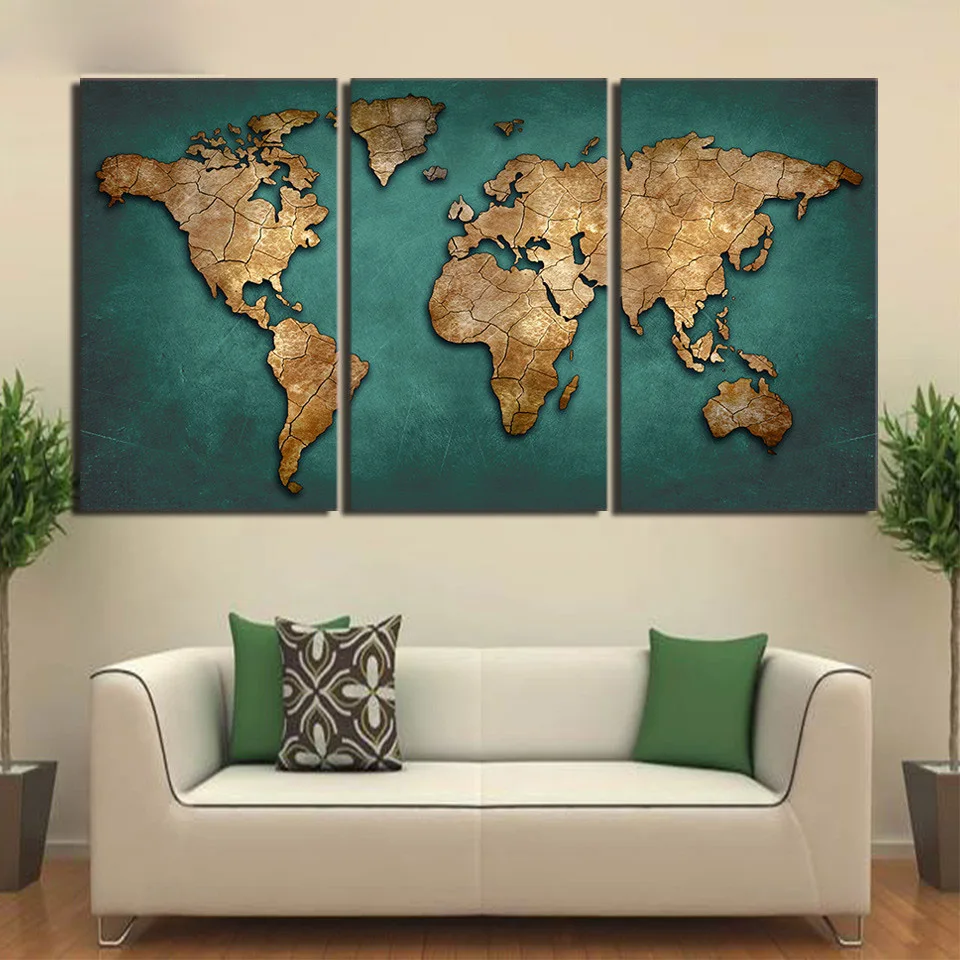 HD холст печати больших Размеры художественное изображение карты мира холст картина на стену в стиле ретро Континентальный плакат Гостиная внутренняя отделка стены