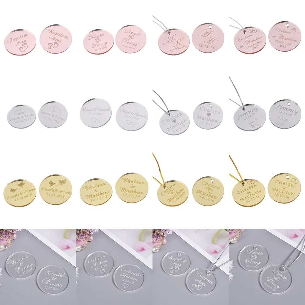 2050100 шт., индивидуальный тег гравированное зеркало, акриловый круглый свадебный стол с именем, детский декорация с крещением, подарок на заказ