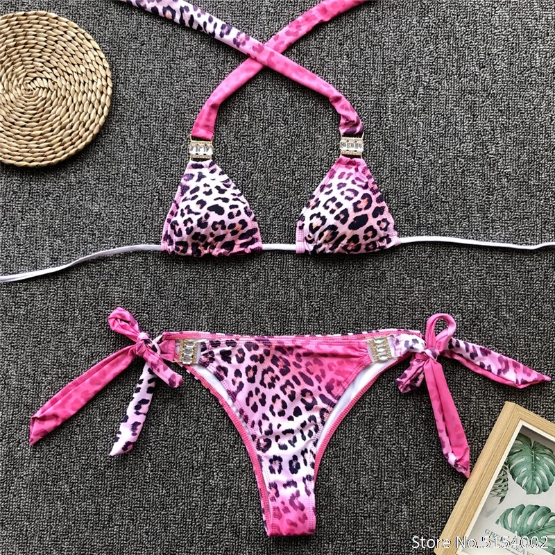 Женский купальник бикини с блестящими кристаллами, бразильский купа...